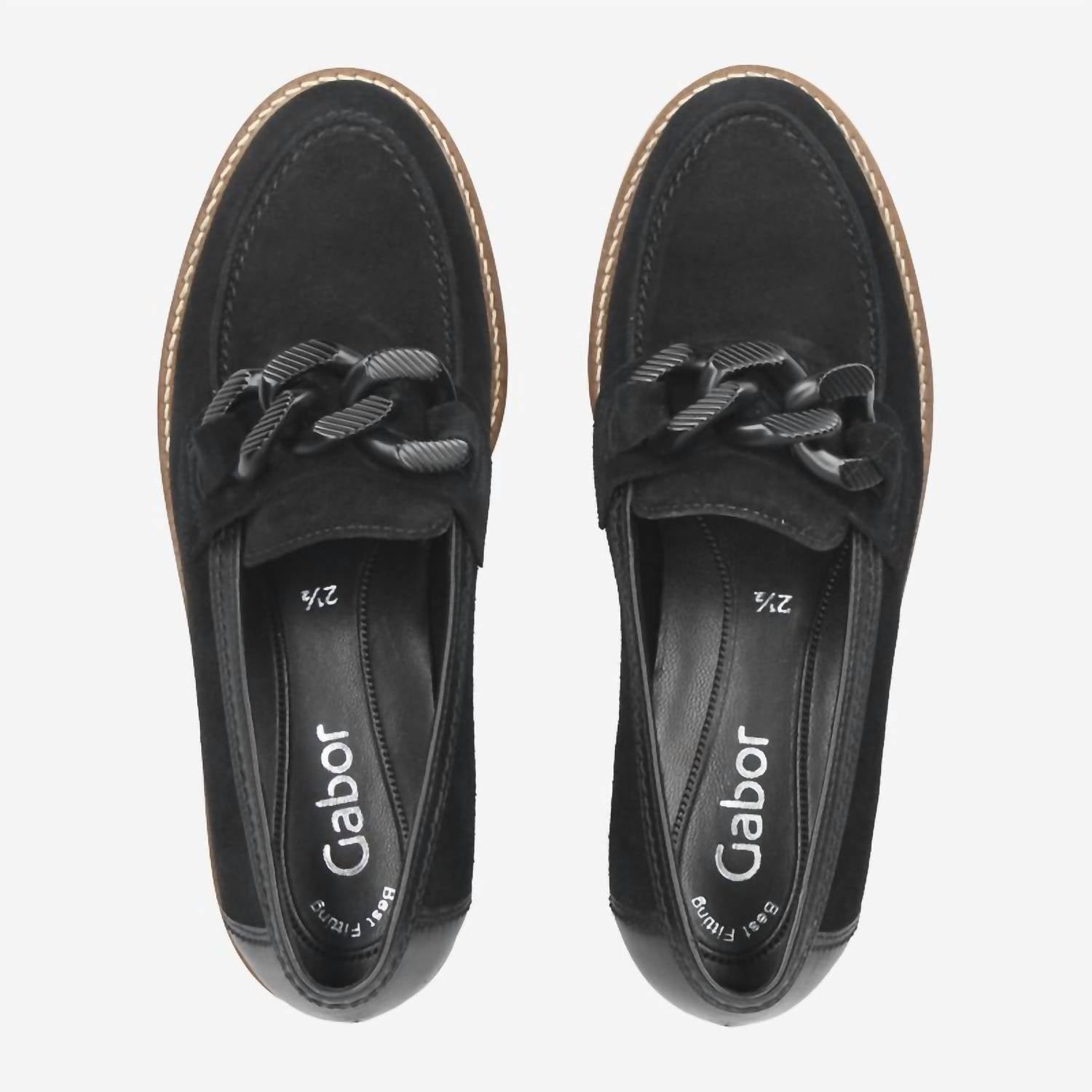Step into comfort and style with the Women Rita Shoes by GABOR, crafted in sophisticated black for a unique blend of class and durability. These loafers feature a 35 mm (1.38 inches) medium block heel, perfect for all-day wear. Expertly constructed with a combination of suede and nappa leather, these shoes boast a breathable leather inner lining and insole for superior comfort. The rubber sole ensures durability, while the decorative stitching and loafer application add a touch of elegance.