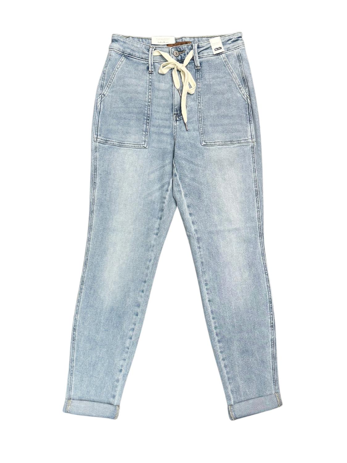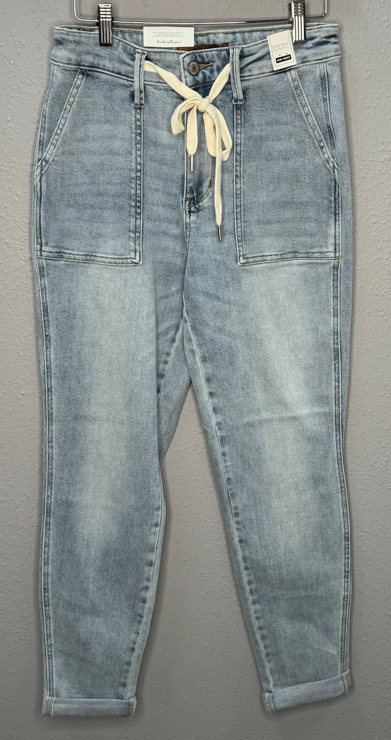 Elevate your comfort and style with the Vintage Jogger by Judy Blue, a must-have denim piece in a classic light wash blue. These joggers feature a high-rise waist with a pull-on closure and a drawstring for a customized fit, making them perfect for travel and casual outings. Crafted from a blend of 94% cotton, 5% polyester, and 1% spandex, they offer incredible softness and stretch, with an inseam of 29" and a rise of 11.25" for optimal comfort. Designed in a relaxed fit with straight legs and functional pockets, these joggers are machine washable and can be tumble dried, ensuring convenient care.