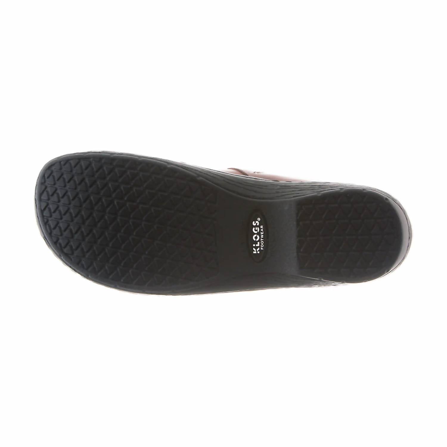 Discover the Women's Mission Clog by Klogs Footwear, a popular choice for healthcare professionals seeking comfort and durability. Crafted from full-grain leather in striking Infield Chaos, this clog is designed with a roomy round toe and flat heel measuring under 1 inch. The TRUBase® Outsoles, featuring exclusive PURGrip® technology, offer slip-resistant stability on wet or oily surfaces, while the polyurethane TRUComfort® Insoles provide latex-free cushioning to alleviate foot, back, and leg pain. Enjoy all-day support with a wide fit and lightweight feel designed for long shifts.