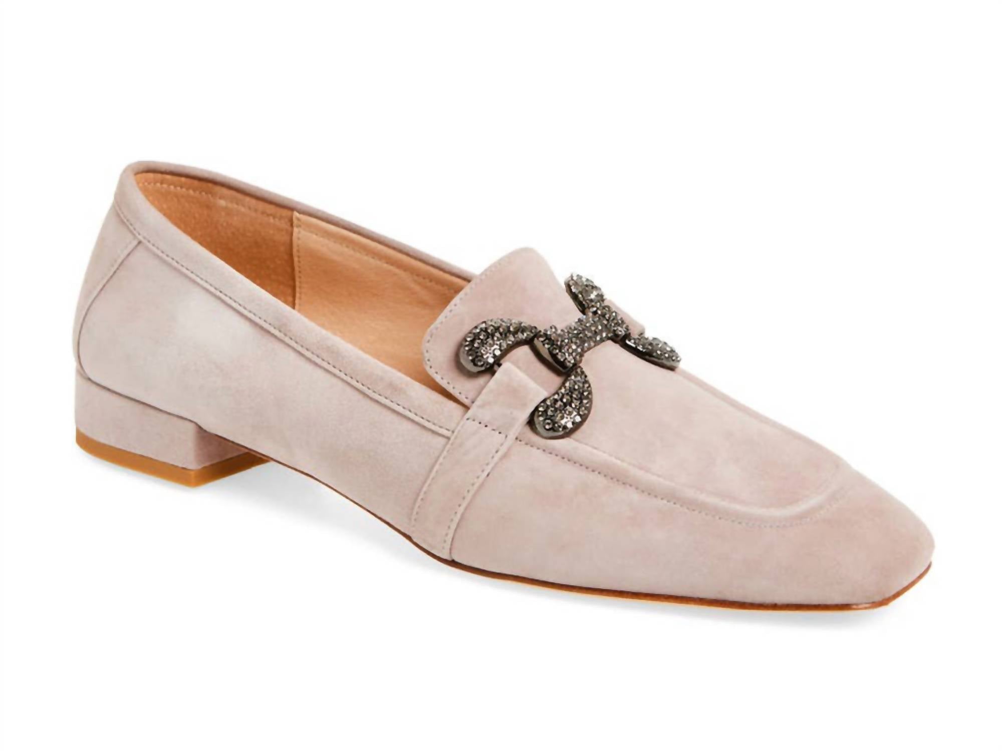 A preppy yet feminine take on the classic loafer. Crafted with a soft suede upper and leather lining, these loafers feature a squared toe shape and a cushioned footbed for enhanced comfort. The loafer is designed with a flat heel, offering a subtle 7/8" heel height. Leather outsole.