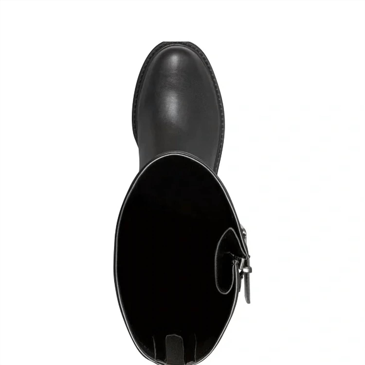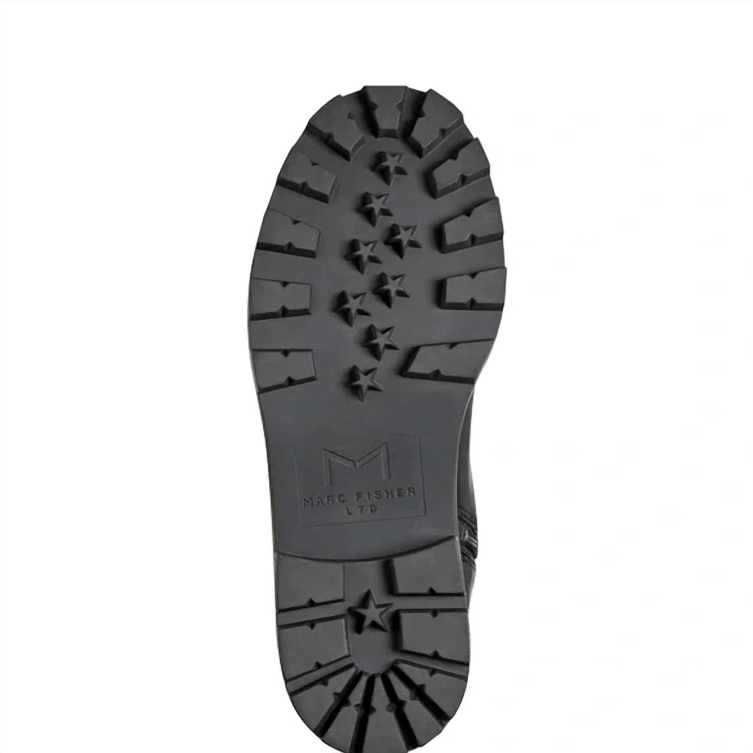 Step into bold style with the Women's Ganven Lug Sole Over The Knee Boots by Marc Fisher LTD. Featuring a striking synthetic upper in classic black and a low 1.5-inch heel, these boots deliver both style and comfort. The round toe design is complemented by elastic gussets and decorative buckles, enhancing their edgy appeal. With a convenient side zip closure and padded insole, they effortlessly combine functionality with fashion.