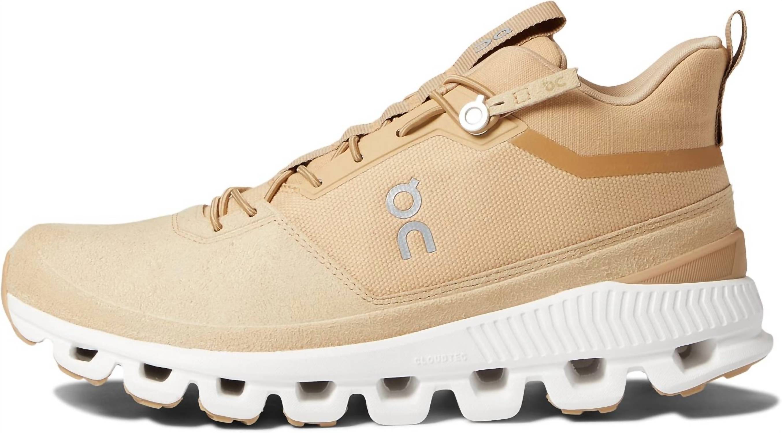 Step out in style with the Women's Cloud Hi Sneakers by On, offered in the chic Dune shade. Crafted with a breathable mesh upper made from a combination of textile and suede, these sneakers promise high-performance comfort. They feature a state-of-the-art design with CloudTec foams and a series of pods that collapse and rebound for a cloud-like feel, enhanced by a Speedboard for extra response. A cushioned tongue and speed-lacing ensure ease of wear, making them perfect for daily adventures. Originating from a brand renowned for both Olympic achievements and Parisian flair, these shoes are the ideal blend of style and functionality.