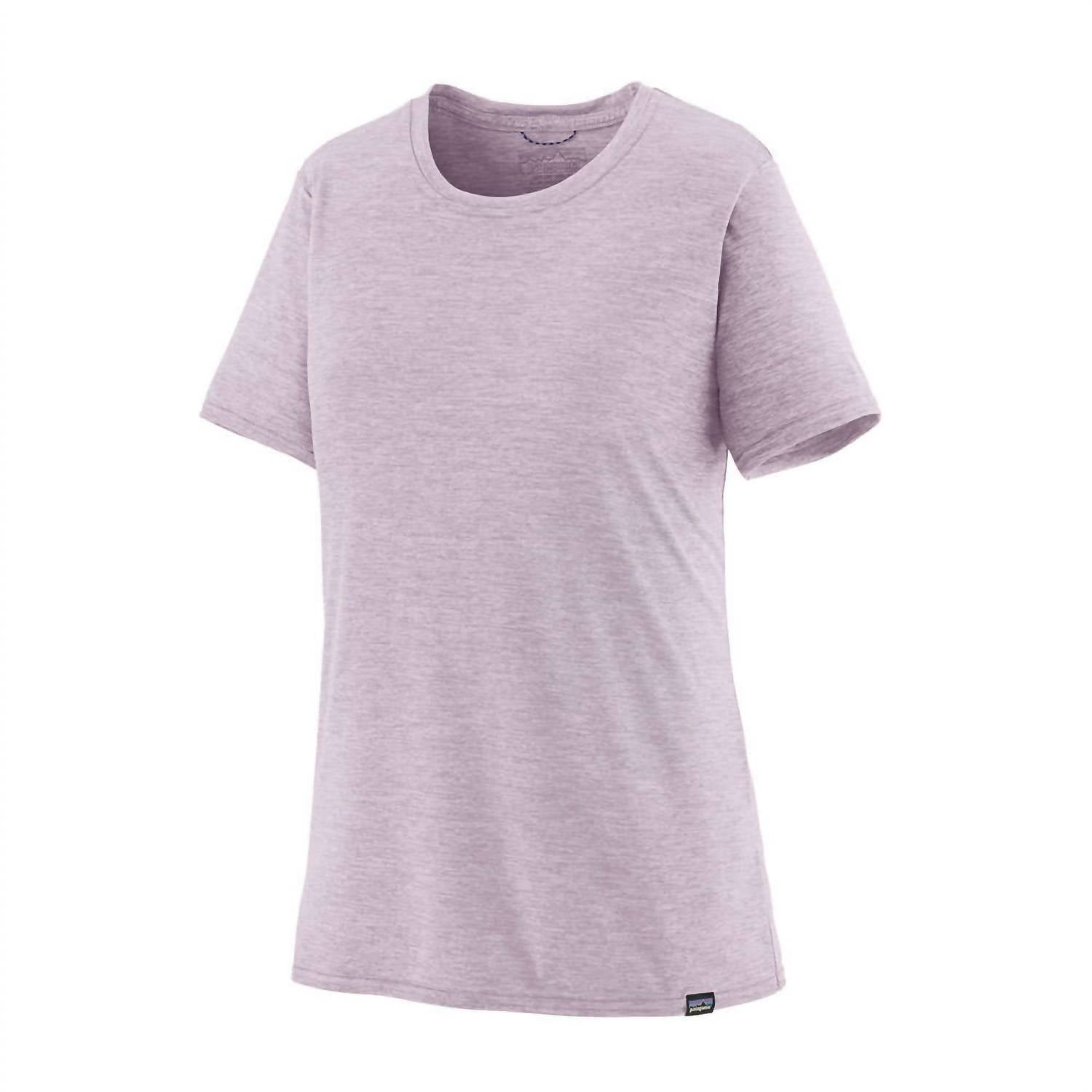 The Cap Cool Lightweight Shirt by Patagonia is tailored for active women who value versatility and comfort while out in nature. This short sleeve tee in vibrant Foxglove Purple is crafted from durable polyester, making it a perfect companion for summer adventures like camping and kayaking. Featuring a solid pattern and practical pull-on design, it's effortless to wear with a classic crewneck look. Ideal for those spirited outings, though wash and dry instructions are not specified.