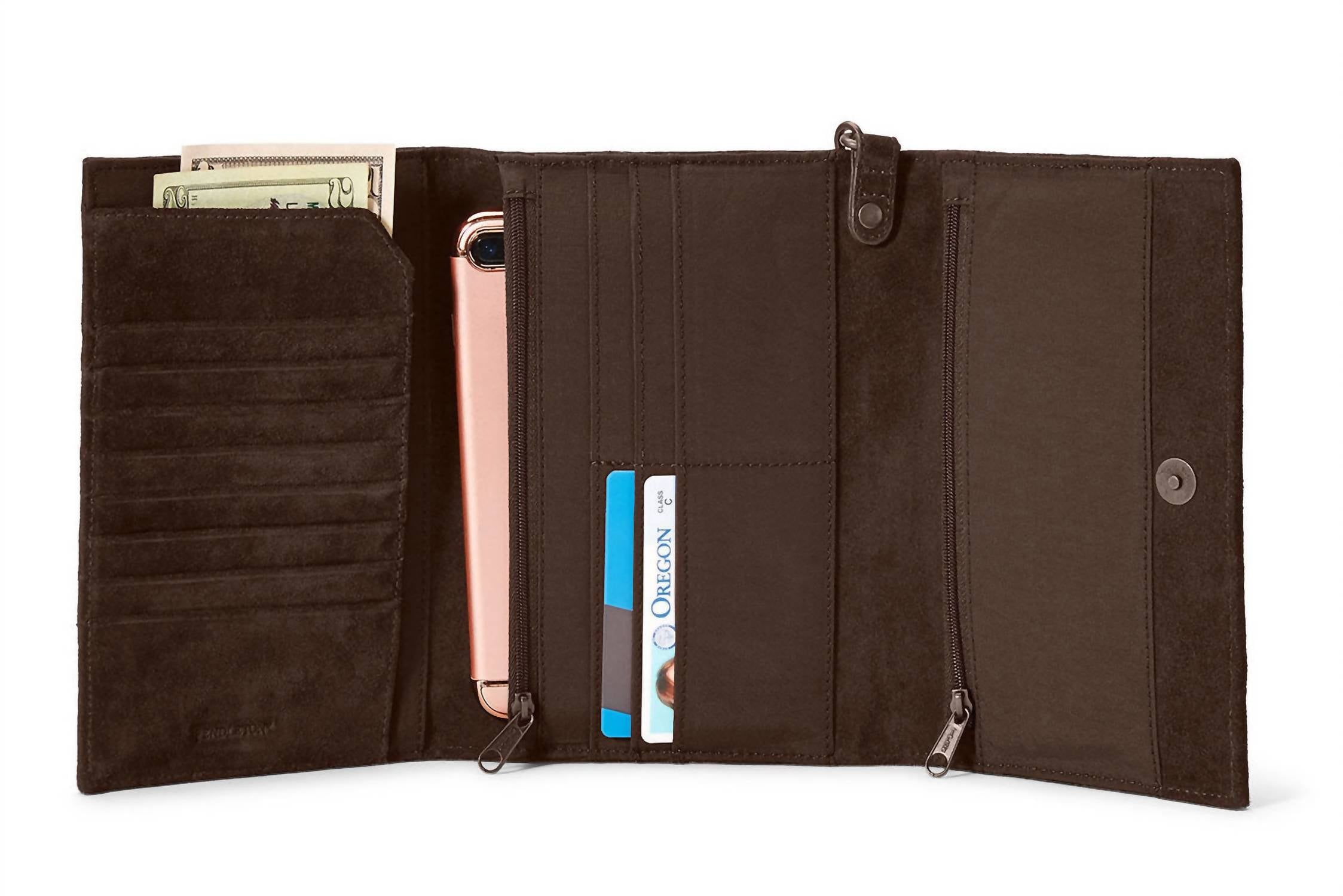 Discover the PENDLETON Women's Trifold Smartphone Wallet in Glacier, a perfect blend of functionality and style. This USA-made wallet is crafted from 82% wool and 18% cotton, with luxurious 100% cow leather trim, featuring a nylon lining for durability. The trifold closure keeps your essentials secure, while two slip pockets, two zip pockets, and 14 card slots offer ample storage, complemented by a removable wristlet strap with a 5-inch drop. Care: Dry clean only for keeping it pristine.