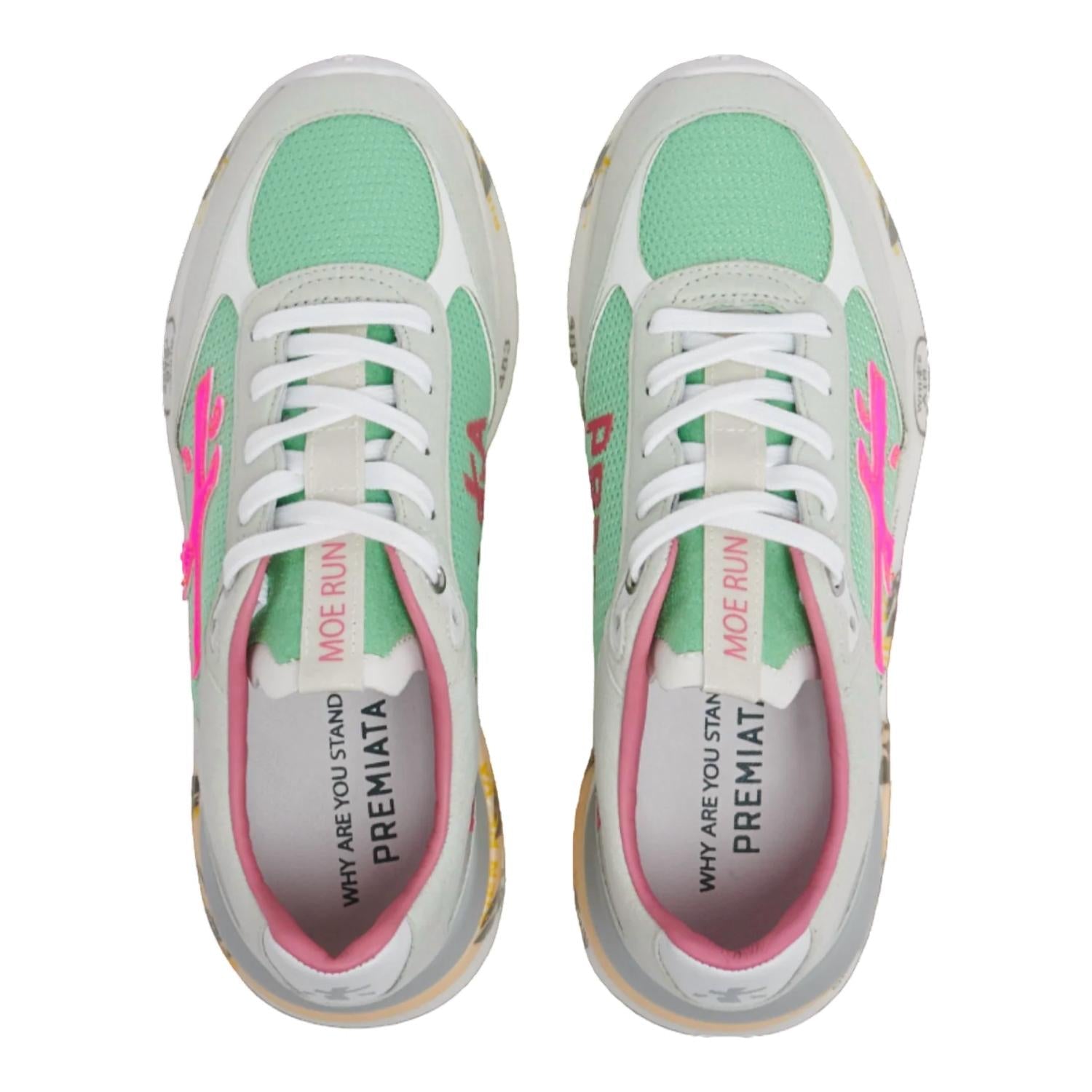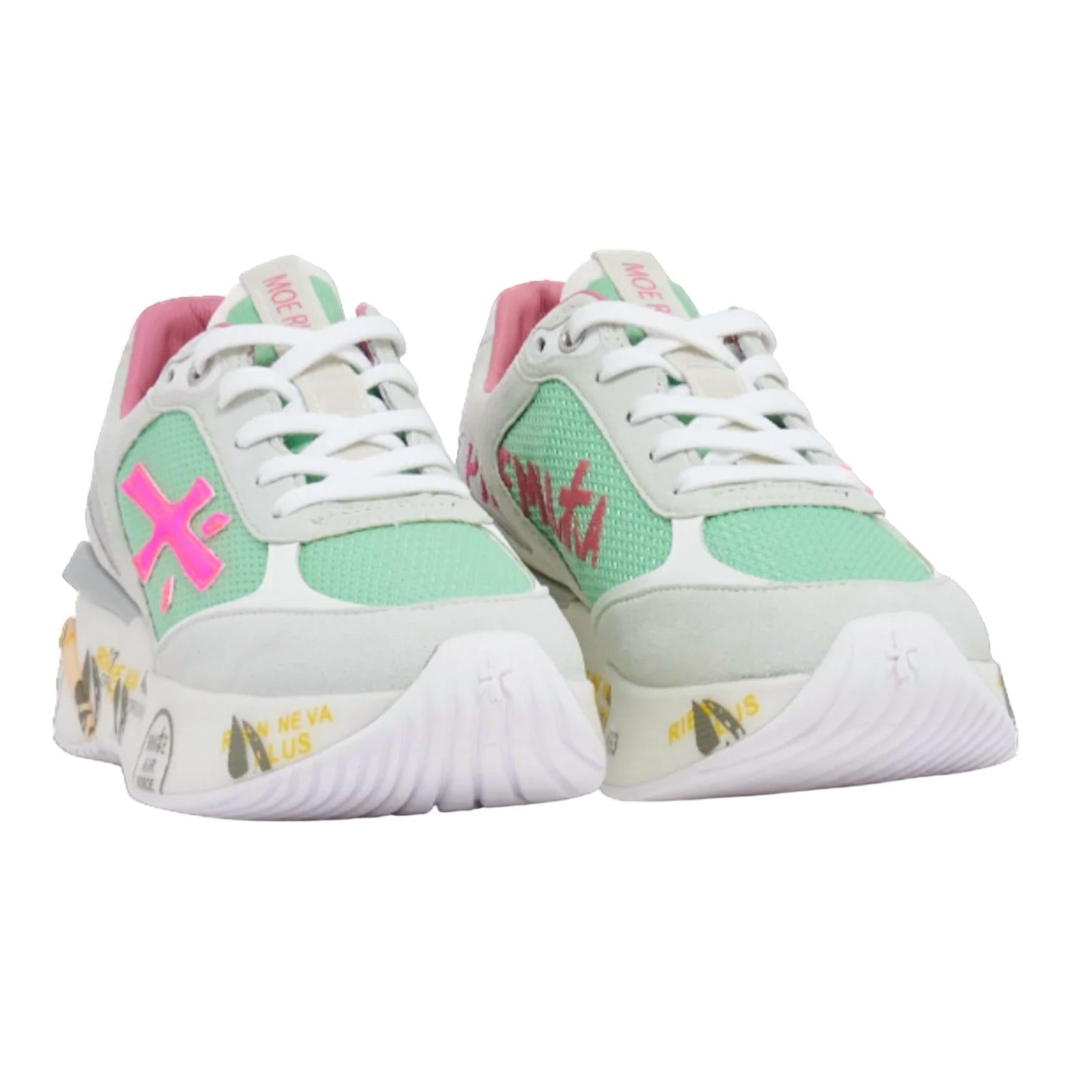 Meet the Women's Moerund 6339 Sneakers by Premiata, a chic fusion of modern style and functionality. Designed in a refreshing Ice/Green hue, these sneakers are crafted from a dynamic blend of breathable mesh, durable suede, and sturdy rubber, ensuring both comfort and lasting wear. Perfect for a variety of occasions, from athletic activities to holiday parties, the high, cushioned sole provides superb support for all-day comfort. A bold side logo adds an eye-catching detail, making these sneakers a versatile choice for spring streetwear.