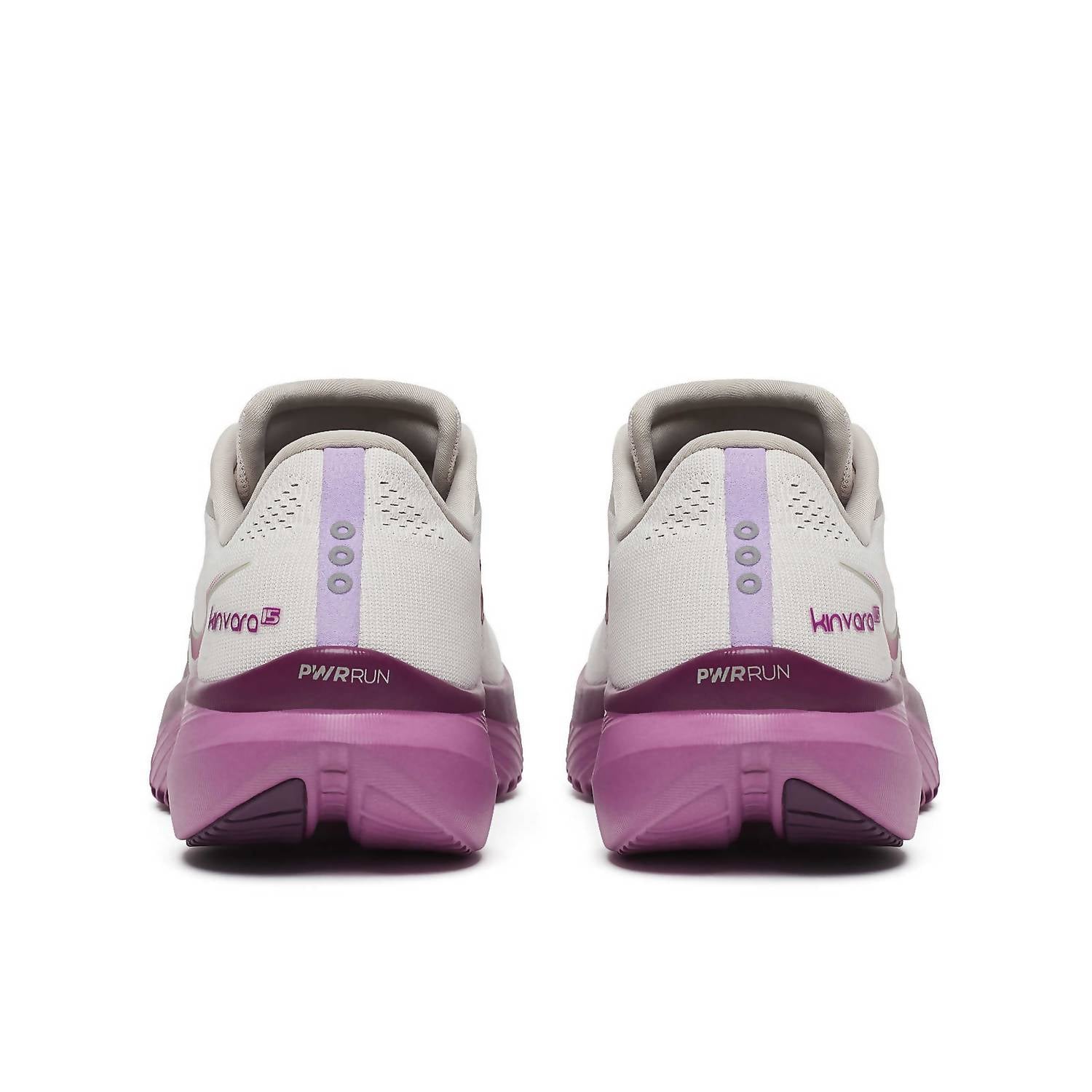 Meet the Women's Kinvara 15 Shoes by Saucony, your go-to for daily movement and speed, crafted in Moon/Viola. Designed with a lightweight seamless engineered mesh upper, these shoes offer breathability and distraction-free comfort for any fitness workout. With a weight of just 6.2oz (177g) and a 4mm offset, they feature a smooth and responsive PWRRUN foam midsole for exceptional ground feel. The XT-900 carbon rubber provides upgraded durability and traction, making this a reliable choice for those chasing their next personal best.
