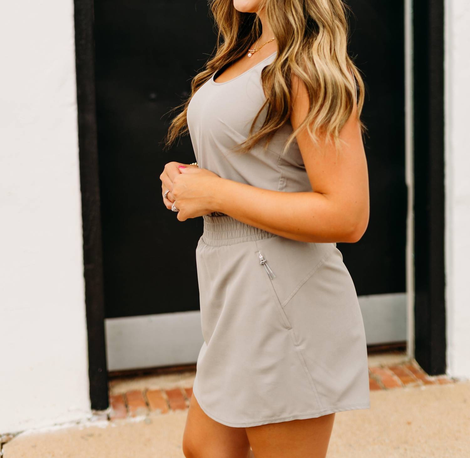 Unveil effortless style with the Spanx On The Move Dress in an elegant stone grey hue, designed for seamless day-to-night transitions. This sleeveless, pull-on design features a flattering A-line silhouette crafted from comfortable nylon, ensuring you look and feel your best. The sleek solid pattern and scoop neckline enhance its sophisticated appeal, making it ideal for your summer vacation wardrobe. Care for this women’s casual dress is straightforward with machine wash and tumble dry instructions.