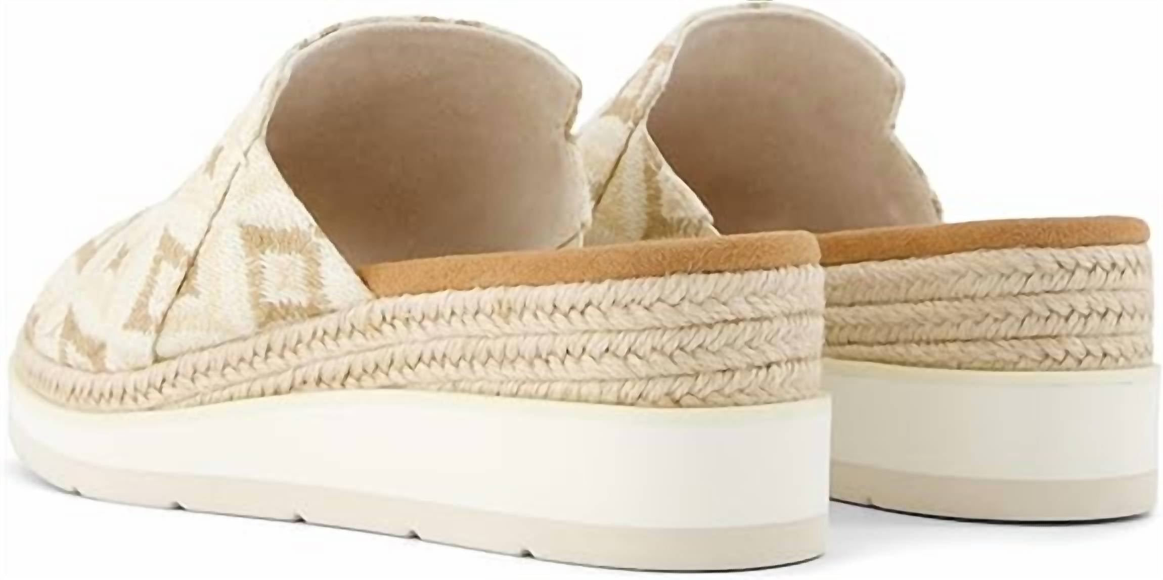 A comfy and easy-to-wear sandal with soft woven fabric straps and a lightweight rope-wrapped platform. It has cushy insoles for all-day support, a stretchy panel for a snug fit, and a durable sole that’s great for everyday use.