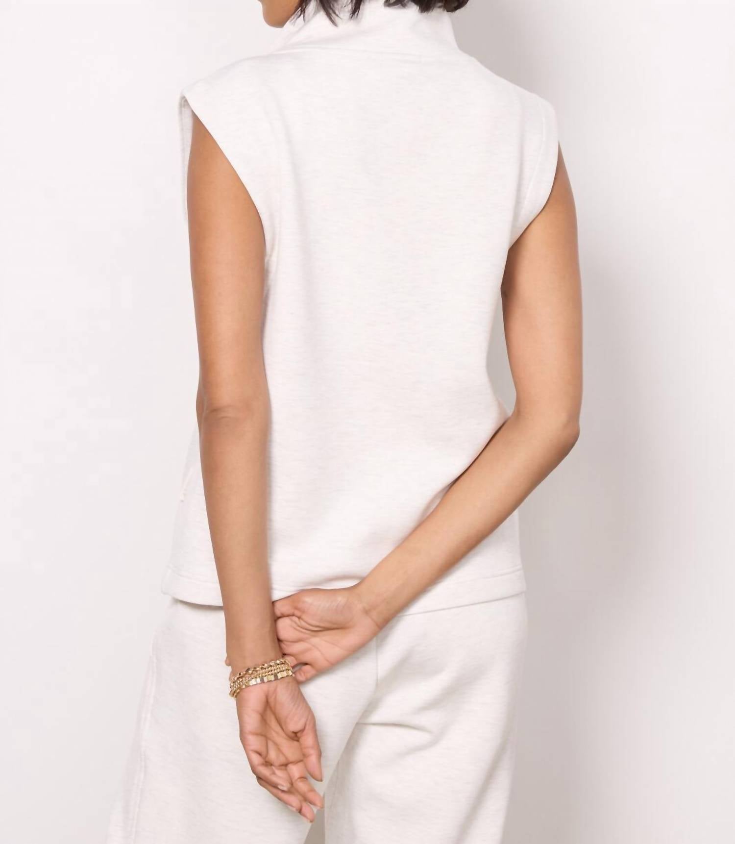 The perfect tank top for those warmer weather seasons. A relaxed fit, half-zip panel, and open hem. Length from Shoulder to Hem: 23 1/2". True to size. Machine wash cold. 72% Viscose, 23% Polyester, 5% Elastane Jersey.