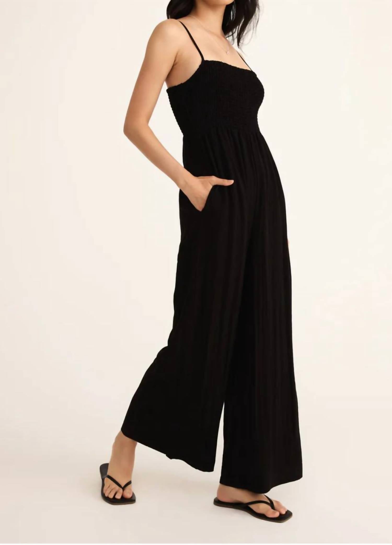 Introducing the Z Supply Beachside Romper, an ankle-length jumpsuit perfect for summer. This stylish piece features spaghetti straps, a smocked bodice, a square neckline, and convenient pockets. Crafted from 90% Rayon and 10% Nylon, it offers a relaxed fit with a pull-on closure. Care instructions specify machine wash for easy maintenance. Model is wearing a size small, and it runs true to size with a relaxed fit.