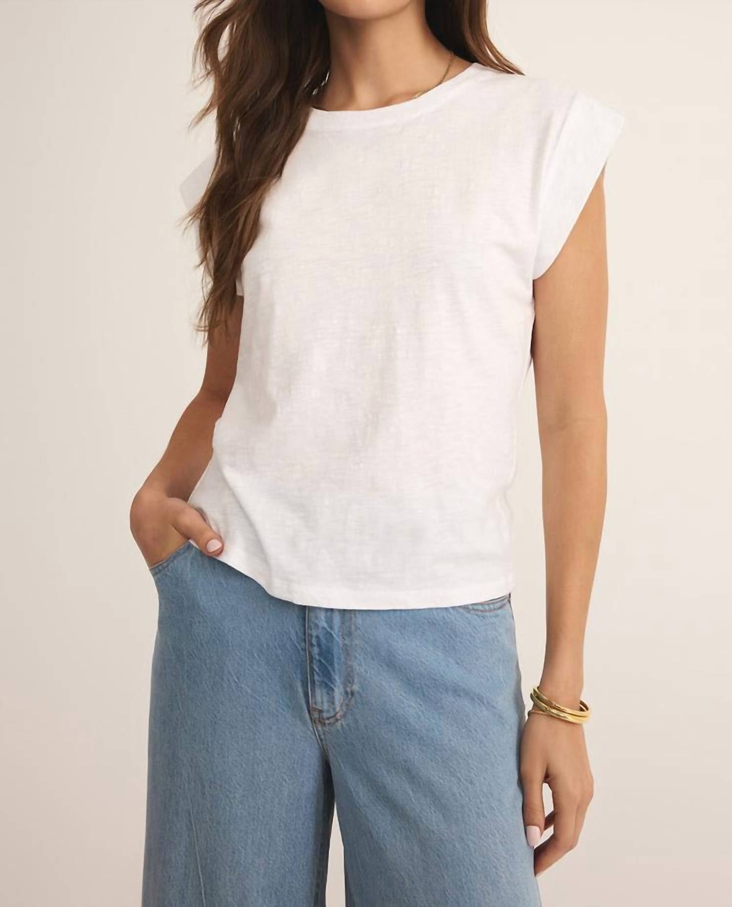 The short sleeve tee you'll want in every color. Embrace effortless style with the Z Supply Camino Top in a fresh white hue, perfect for the spring and summer seasons. This solid cap sleeve T-shirt is crafted from a 56.7% Cotton and 43.3% Lyocell blend, offering a minimalist look with a comfortable crewneck design. Made for a true-to-size fit, it features a pull-on closure and measures 21" in length with a 33" bust for size XS. Care instructions include machine washing and line drying, making it ideal for vacation-ready ensembles.