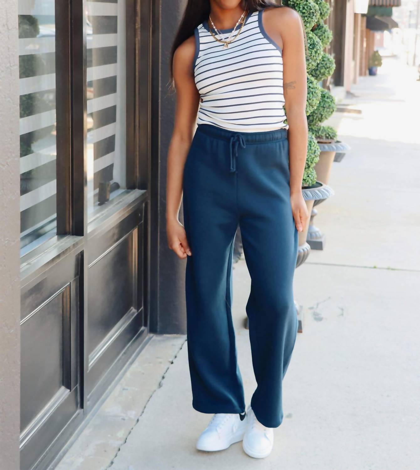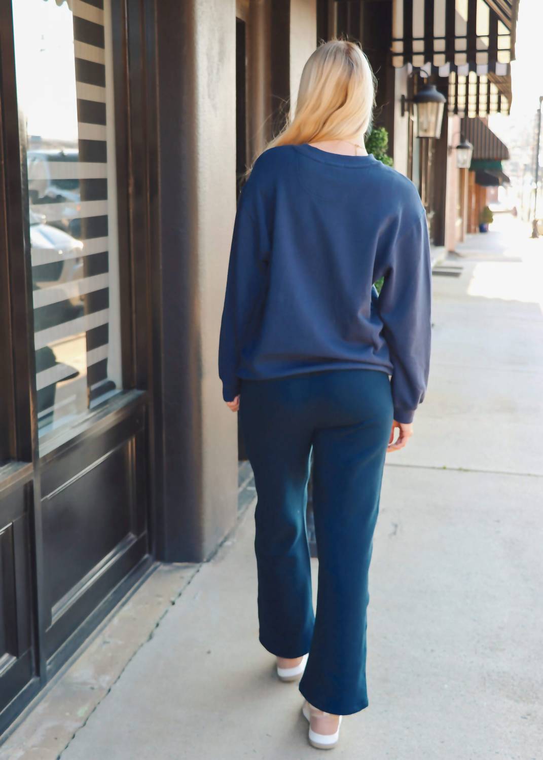 Introducing the Hype Sweatpants by Z Supply, the epitome of cozy elegance in Eclipse Blue. These women's track pants are crafted from 100% Cotton Tuft Fleece, providing a heavyweight yet comforting feel ideal for chilly days. Designed with a high rise and ankle length, these sweatpants feature a relaxed fit with side seam pockets and an elastic waistband for convenience. With a pull-on closure, they’re perfect for athleisure or holiday parties, and the care instructions ensure ease: machine wash cold on a gentle cycle and hang to dry. Hannah wears a size medium; she’s 5’9” and usually dons a small/medium top and medium or 28/29 in bottoms.