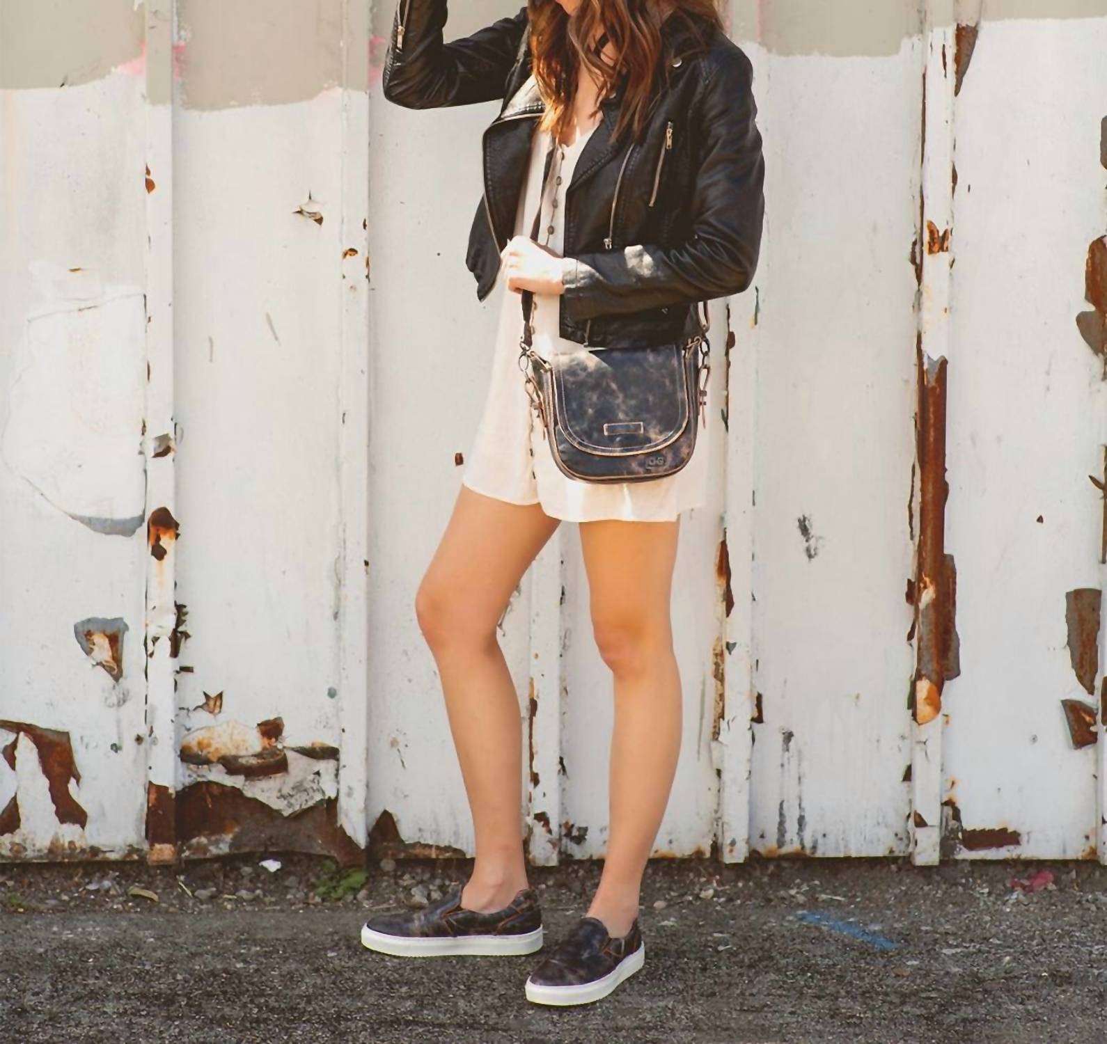 Introducing the Hermione Slip On Sneaker by BEDSTU, the ideal companion for your spring adventures. These women's sneakers feature a slip-on design with goring for stretch and a padded collar, ensuring an easy and comfortable fit for all-day wear. Made from chrome-free, vegetable-tanned leather with a durable white LIVETECH® sole, they are handmade in Leon, Mexico. With a flat heel under 1 inch and a stylish round toe shape, they are perfect for travel and exude a timeless 90s fashion vibe.