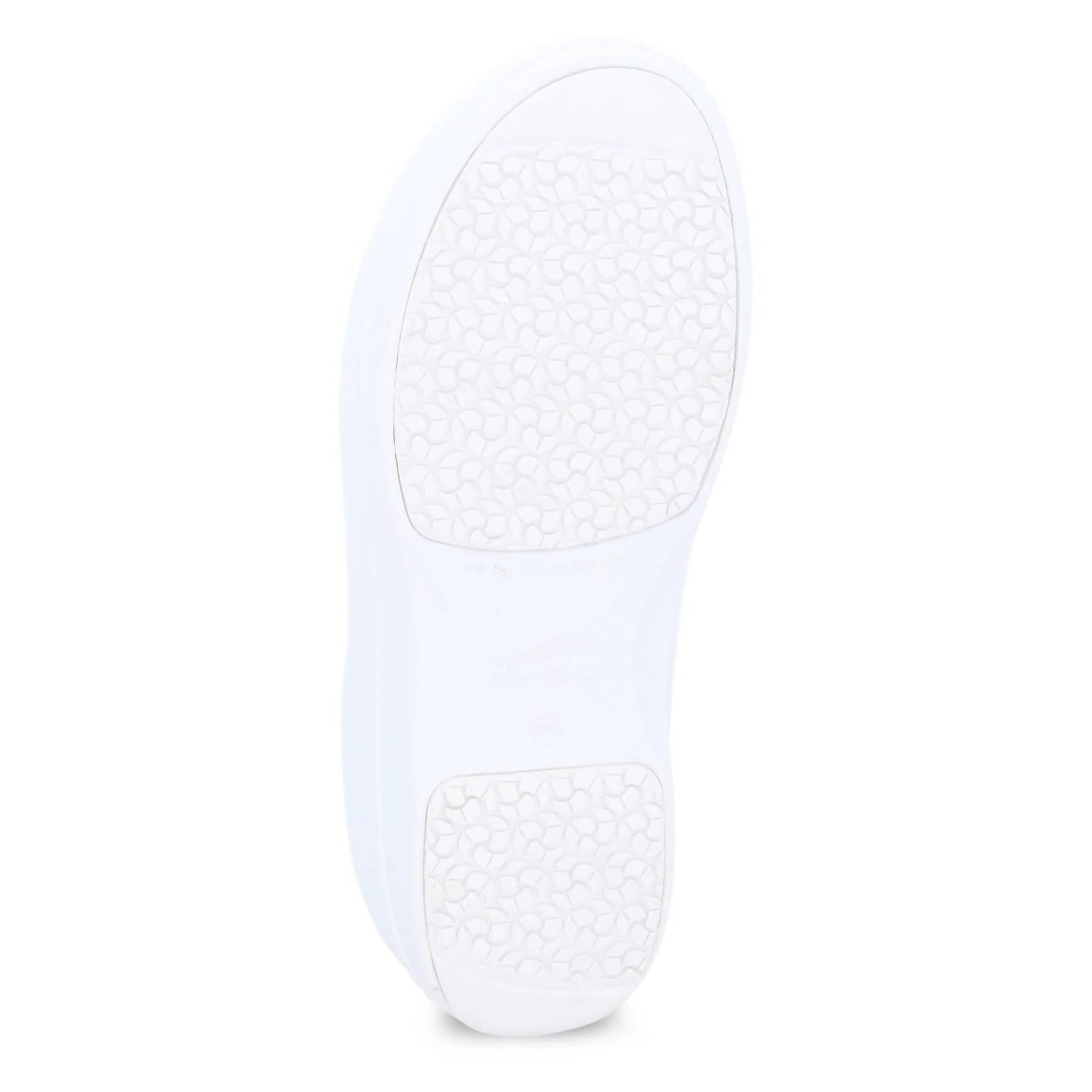 Step into style and comfort with the Dansko Women's Kaci Shoes in Molded White. These minimalist sneakers feature lightweight, easy-clean uppers crafted from injected EVA with over 50% I'm green™ bio-based material for exceptional shock absorption. Designed with patented Dansko Natural Arch® Technology, these shoes offer enhanced support and a removable EVA footbed for all-day comfort. The slip-resistant rubber outsole ensures stability on both dry and wet surfaces, making them perfect for a dinner party or any spring occasion.