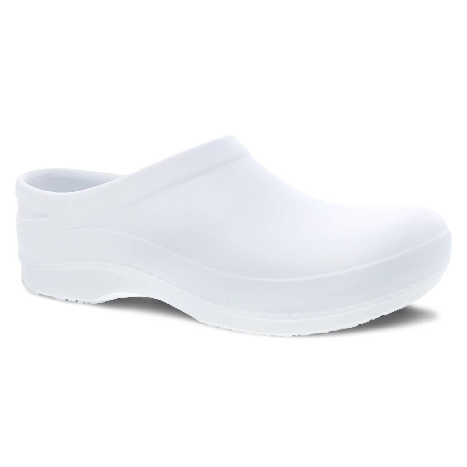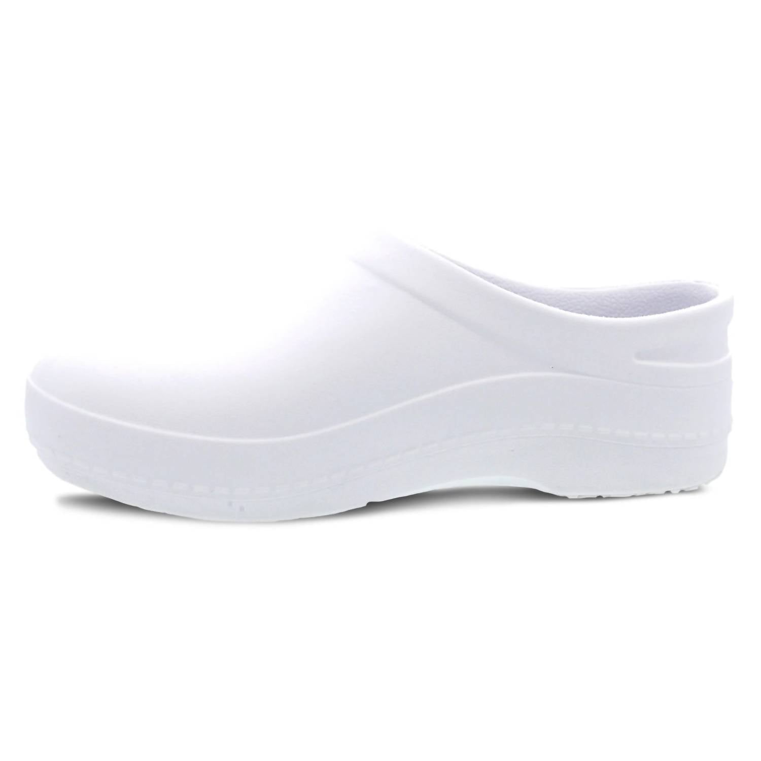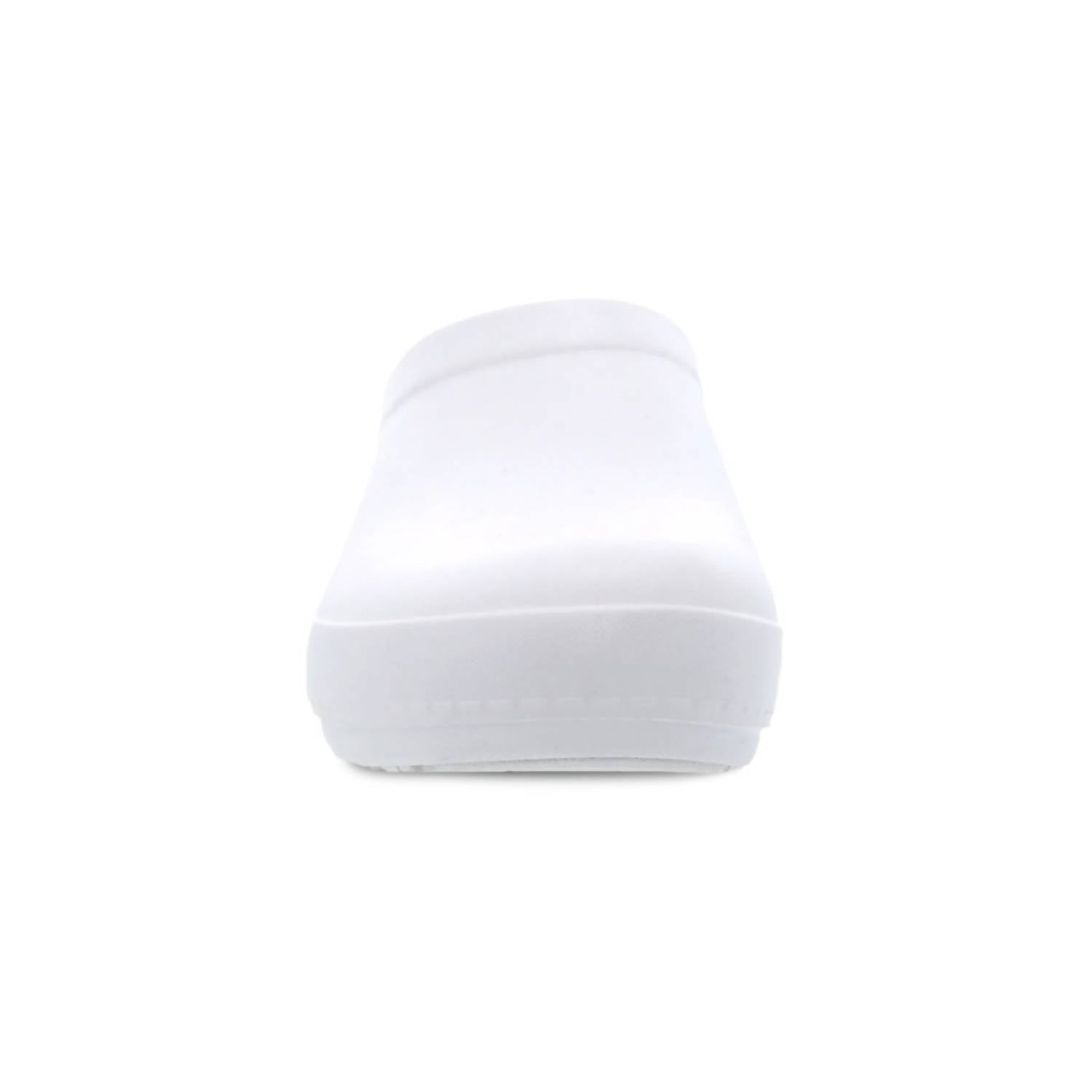 When fashion and function come together seamlessly. Step into style and comfort with the Dansko Women's Kaci Shoes in Molded White. These minimalist sneakers feature lightweight, easy-clean uppers crafted from injected EVA with over 50% I'm green™ bio-based material for exceptional shock absorption. Designed with patented Dansko Natural Arch® Technology, these shoes offer enhanced support and a removable EVA footbed for all-day comfort. The slip-resistant rubber outsole ensures stability on both dry and wet surfaces, making them perfect for a dinner party or any spring occasion.