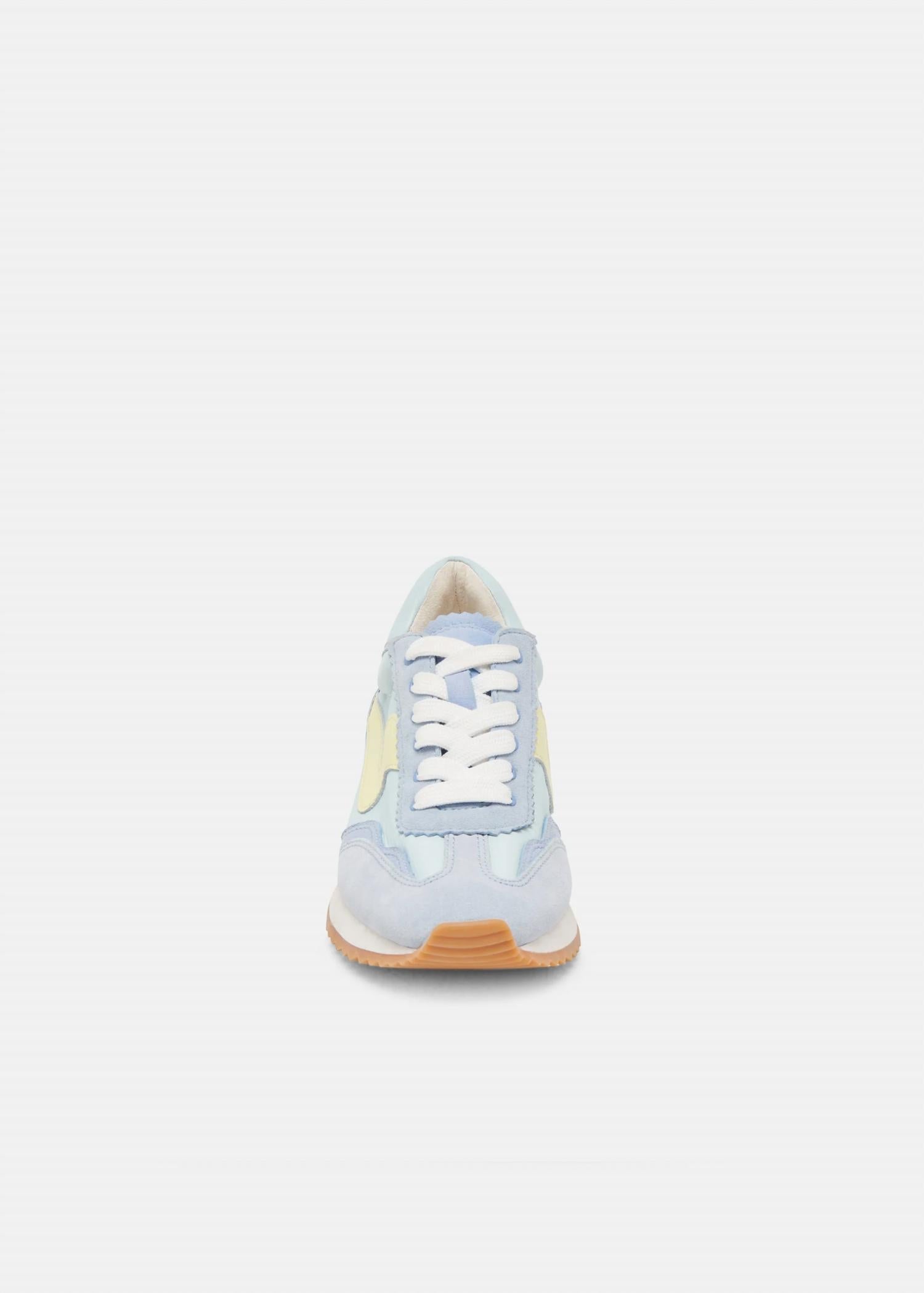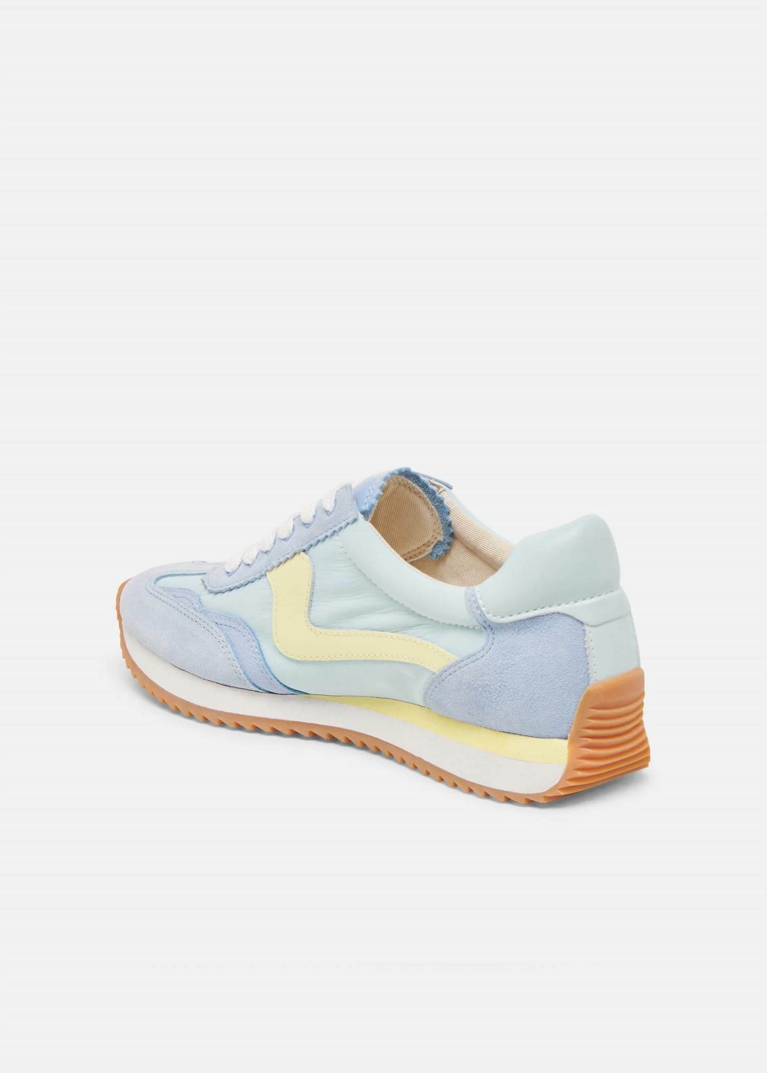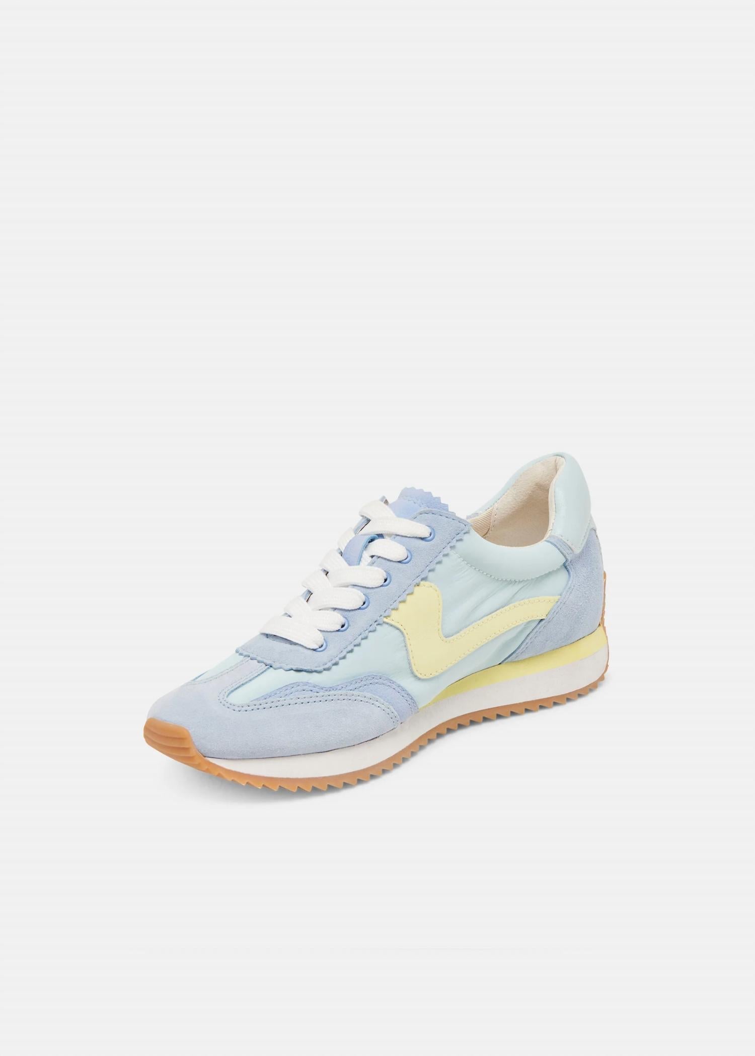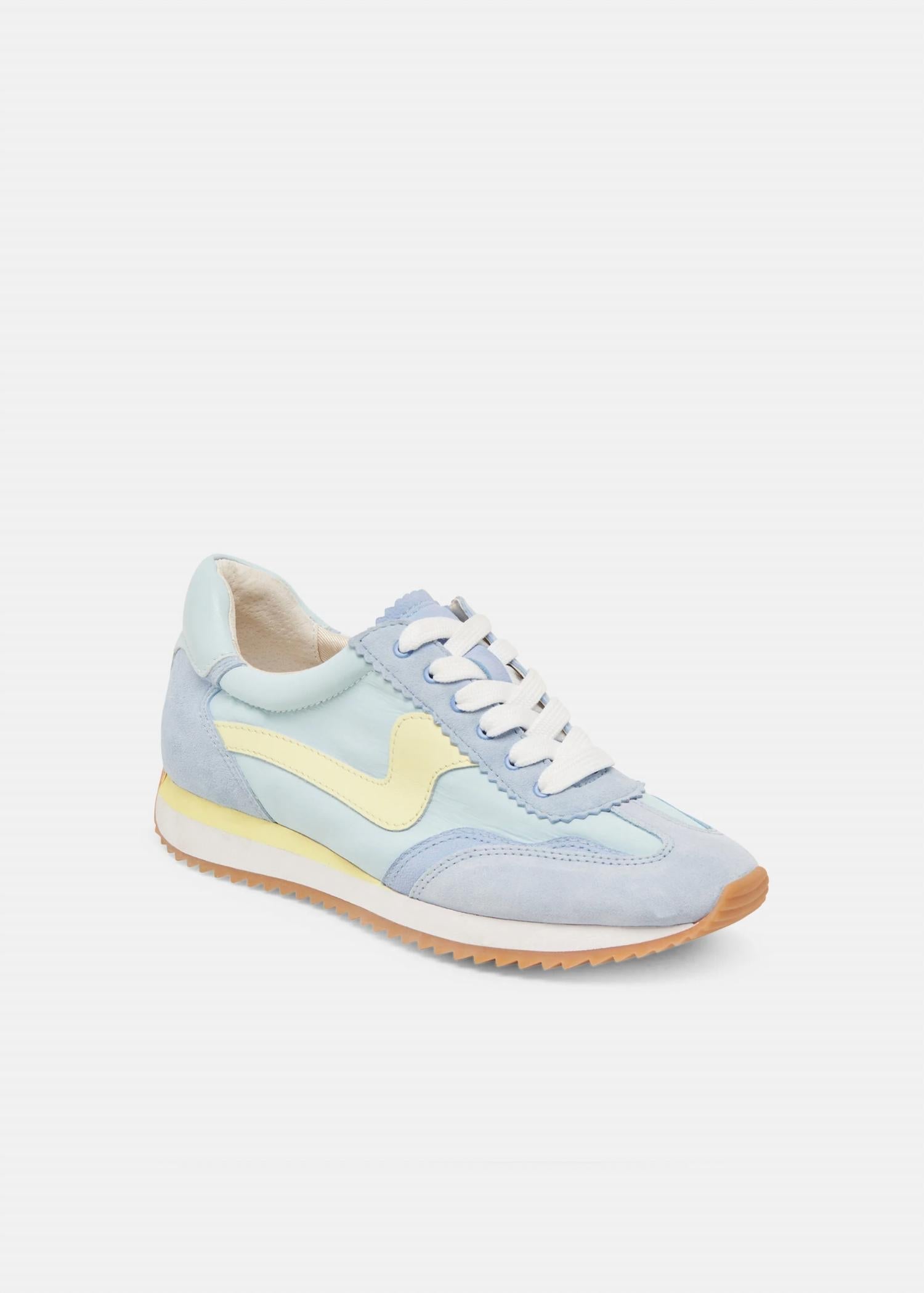 When fashion and function come together seamlessly. Discover the Women's Sneakers by Dolce Vita in Blue Nylon, a staple for streetwear aficionados and summer travel. These sporty sneakers feature a blend of suede, nylon, and leather for a sophisticated twist on everyday footwear. Their flat heel and round toe design offer comfort, while the recycled synthetic outsole and textile lining reflect eco-friendly craftsmanship. Crafted with attention to detail, they embody versatile style perfect for your next journey.