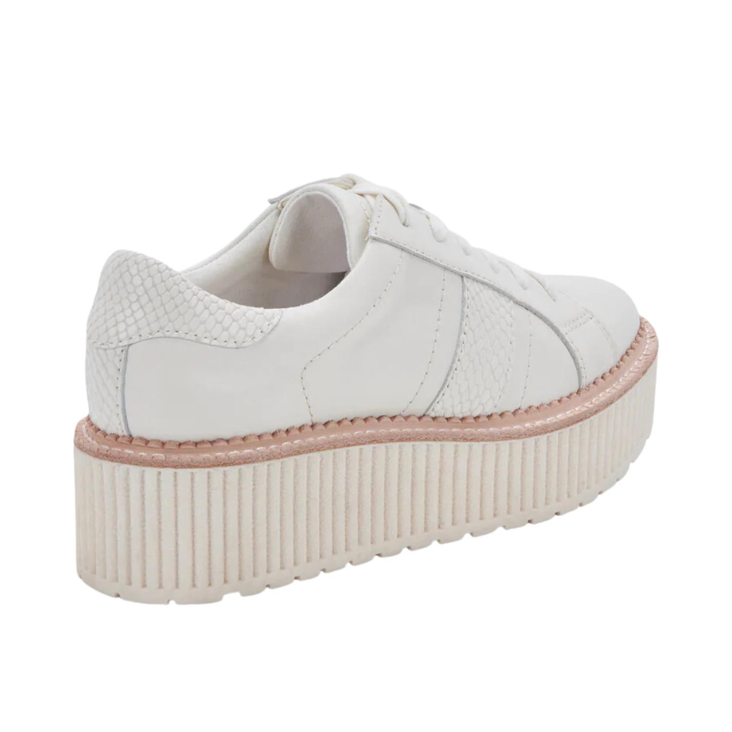 Experience the perfect blend of style and sustainability with the Women's Tiger Platform Sneakers by Dolce Vita. Featuring a chic leather upper in white, these sneakers are designed for a trendy streetwear look, perfect for your next holiday party. With a 2" platform heel crafted from a recycled synthetic outsole, and a water-based leather alternative lining, these sneakers are ideal for any spring occasion. Step out confidently in eco-friendly footwear that doesn't compromise on style.