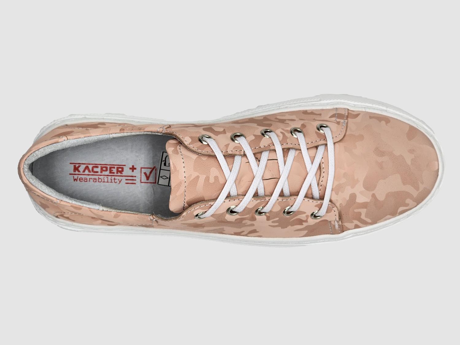 Design moderno em camuflagem rosa com elegantes detalhes em branco. Confeccionado em couro natural de alta qualidade para maior durabilidade. A estrutura leve garante uso durante todo o dia. Projetado para um ajuste perfeito, proporcionando o máximo conforto. Feito à mão na Polônia com atenção meticulosa aos detalhes.