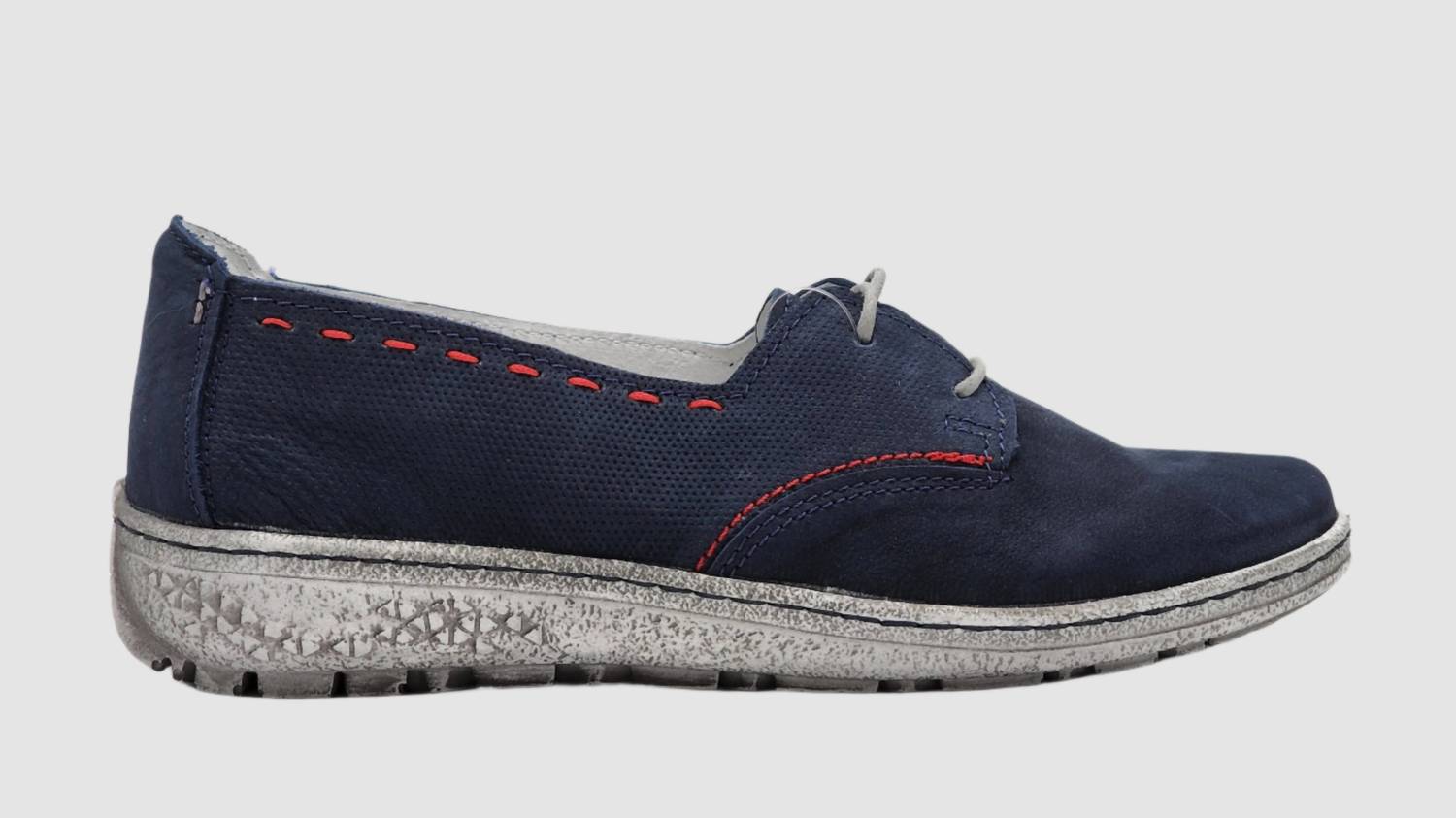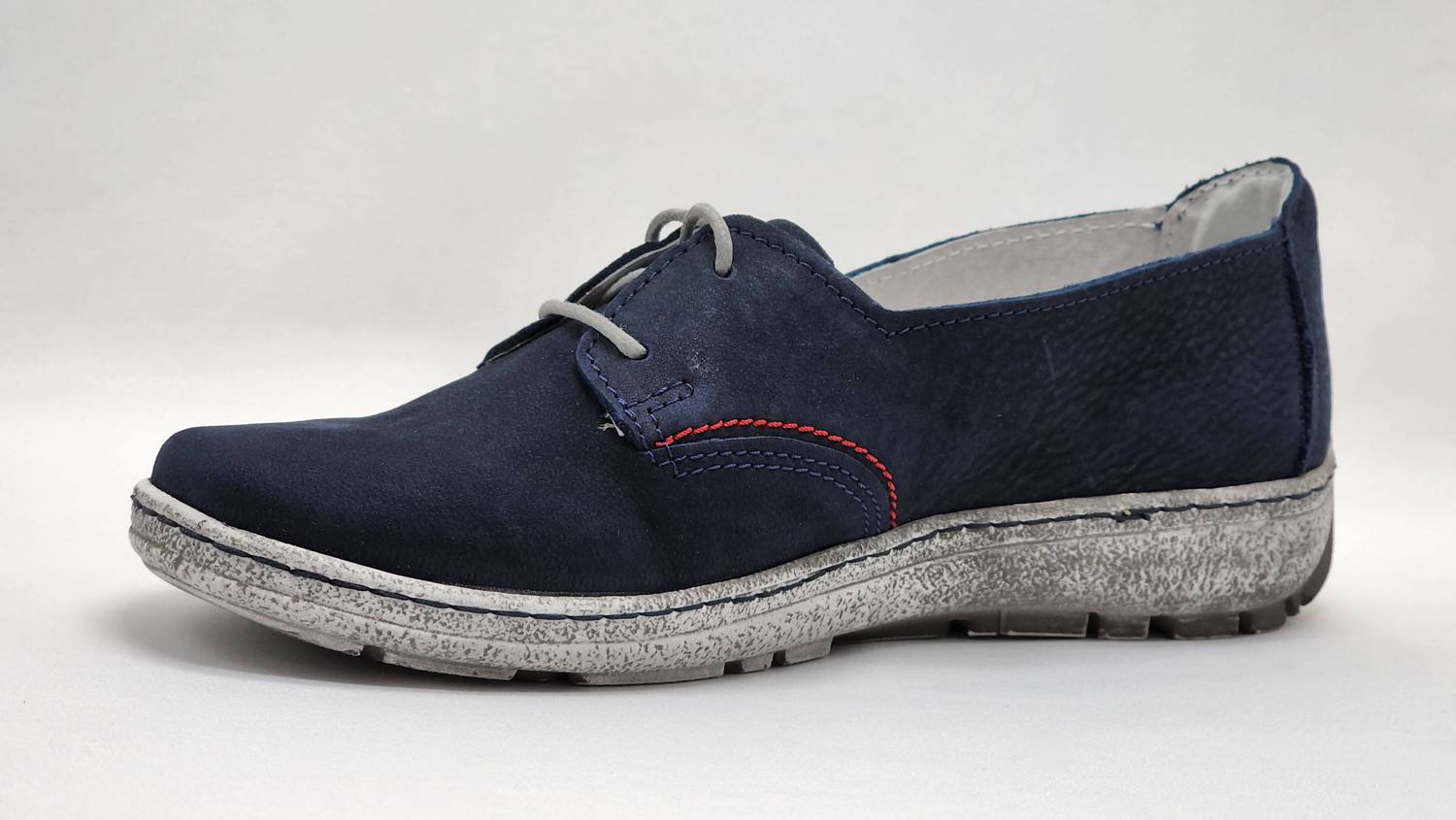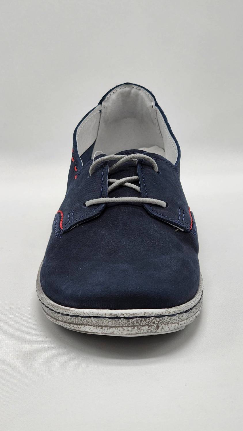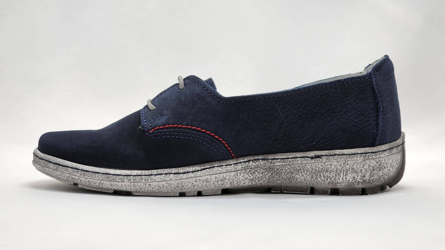 Bonitos, funcionais e confortáveis. Estes tênis atendem a todos os requisitos. Cor azul-marinho. Feito de couro natural de alta qualidade. Muito leve. Projetado para conforto e praticidade durante todo o dia. Tamanho real. Feito à mão na Polônia.