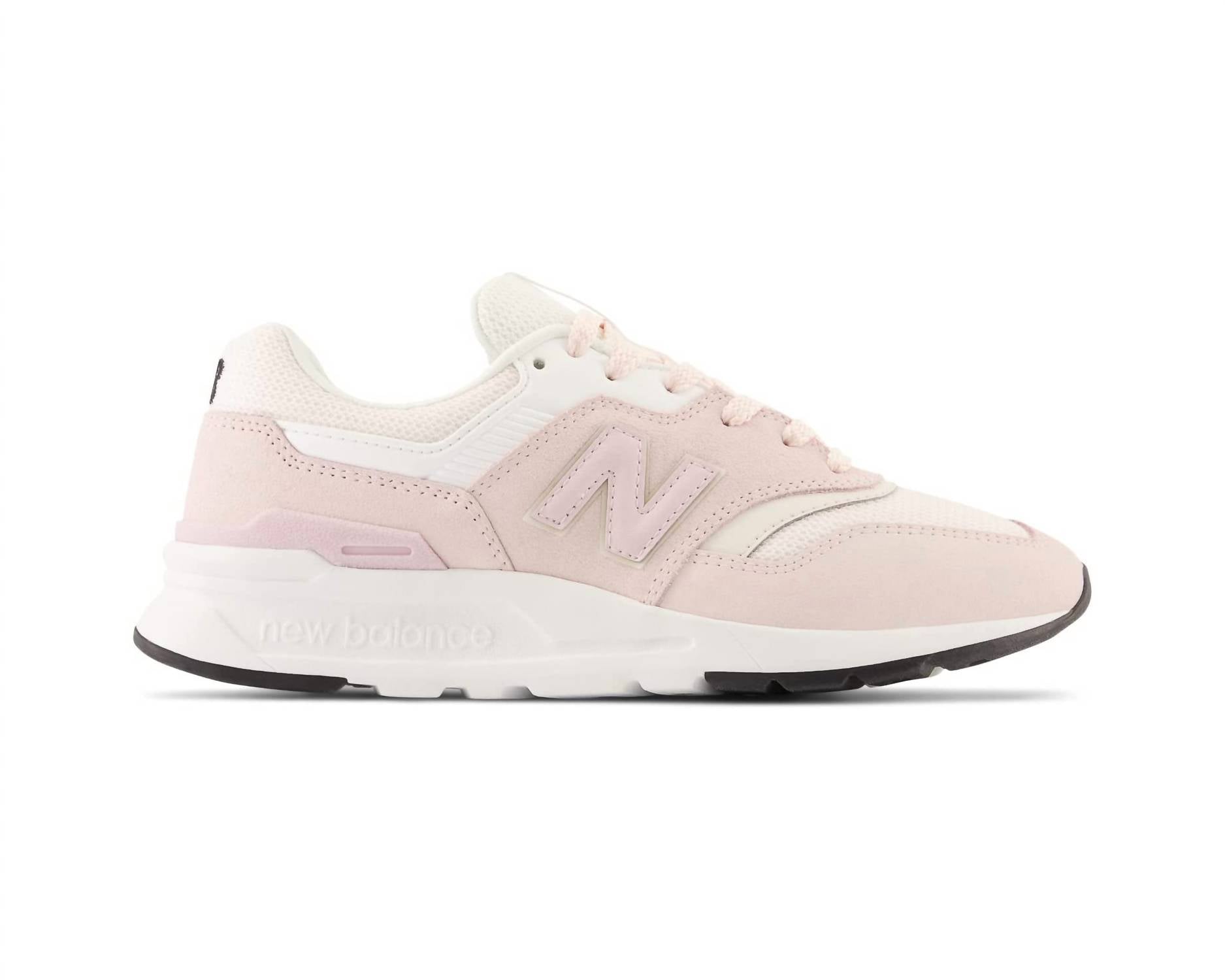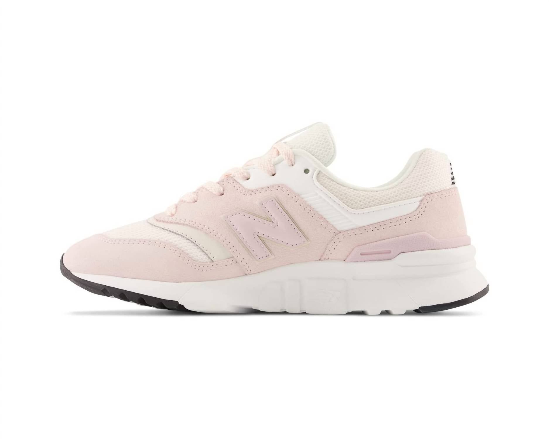 Cute, functional, and comfortable. These sneakers check all the boxes. Elevate your sneaker collection with the New Balance Women's CW997HTV Sneaker in pink, a standout choice for fitness and athleisure occasions. These round toe sneakers feature a textile upper with suede overlays and a bootie construction, ensuring a snug fit with its lace-up closure. Highlights include a breathable mesh textile lining and padded footbed, plus the cutting-edge ENCAP® and ABZORB® midsole technologies for exceptional support and impact absorption. Made for a medium width, these imported sneakers embrace a trendy, flat heel style perfect for spring workouts.