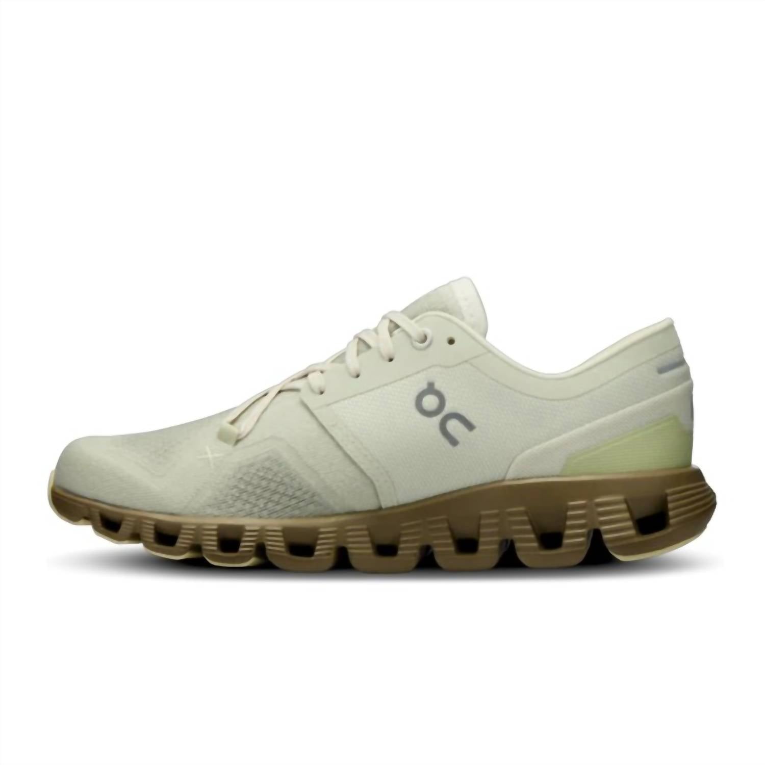 Cute, functional, and comfortable. These sneakers check all the boxes. Experience unparalleled performance with the Women’s Cloud X 3 Sneaker by On Cloud, crafted for athleisure enthusiasts and perfect for game day style. Featuring a round toe and ultralight construction, this sneaker in the Aloe Hunter color is ideal for spring activities. Its highly reactive design ensures superior fit and breathability. Enjoy the versatility and comfort whether you're running or engaging in various activities.