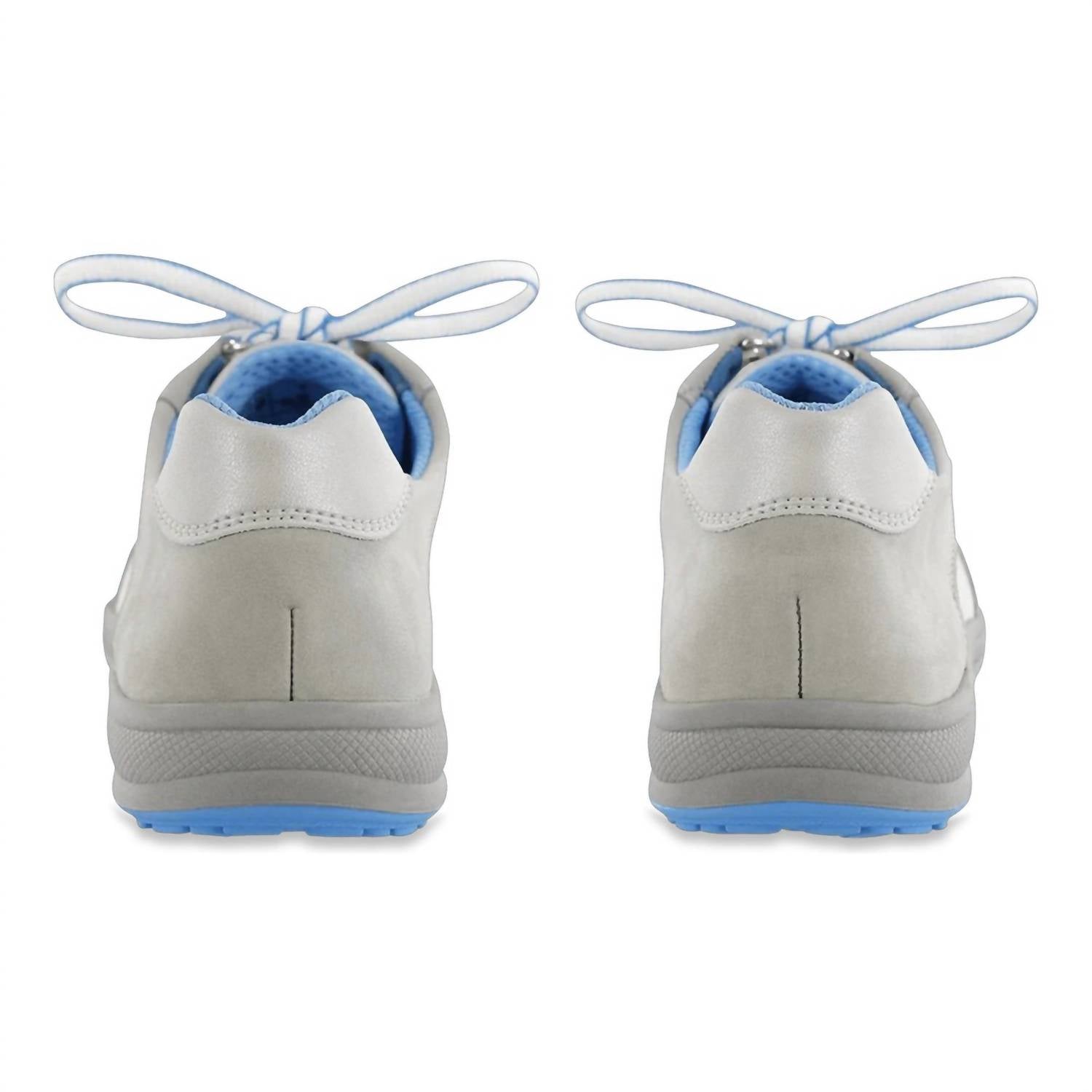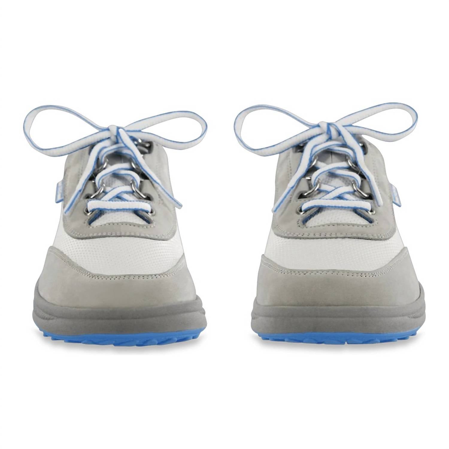 Get your daily steps in with these adorable sneakers. Step confidently into your day with the Women's Sporty Walking Shoes by SAS, crafted for the active woman. These sneakers combine a genuine leather upper in an elegant gray and white with breathable nylon, ensuring style without compromising on function. Featuring SAS EZ Laces and a removable SAS Contoured Everbounce footbed, these shoes deliver a custom fit and superior comfort. The 1.5" heel height, along with TRIPAD Technology and a dual-density sole, provides enhanced stability and shock absorption, perfect for your fitness and athleisure needs.