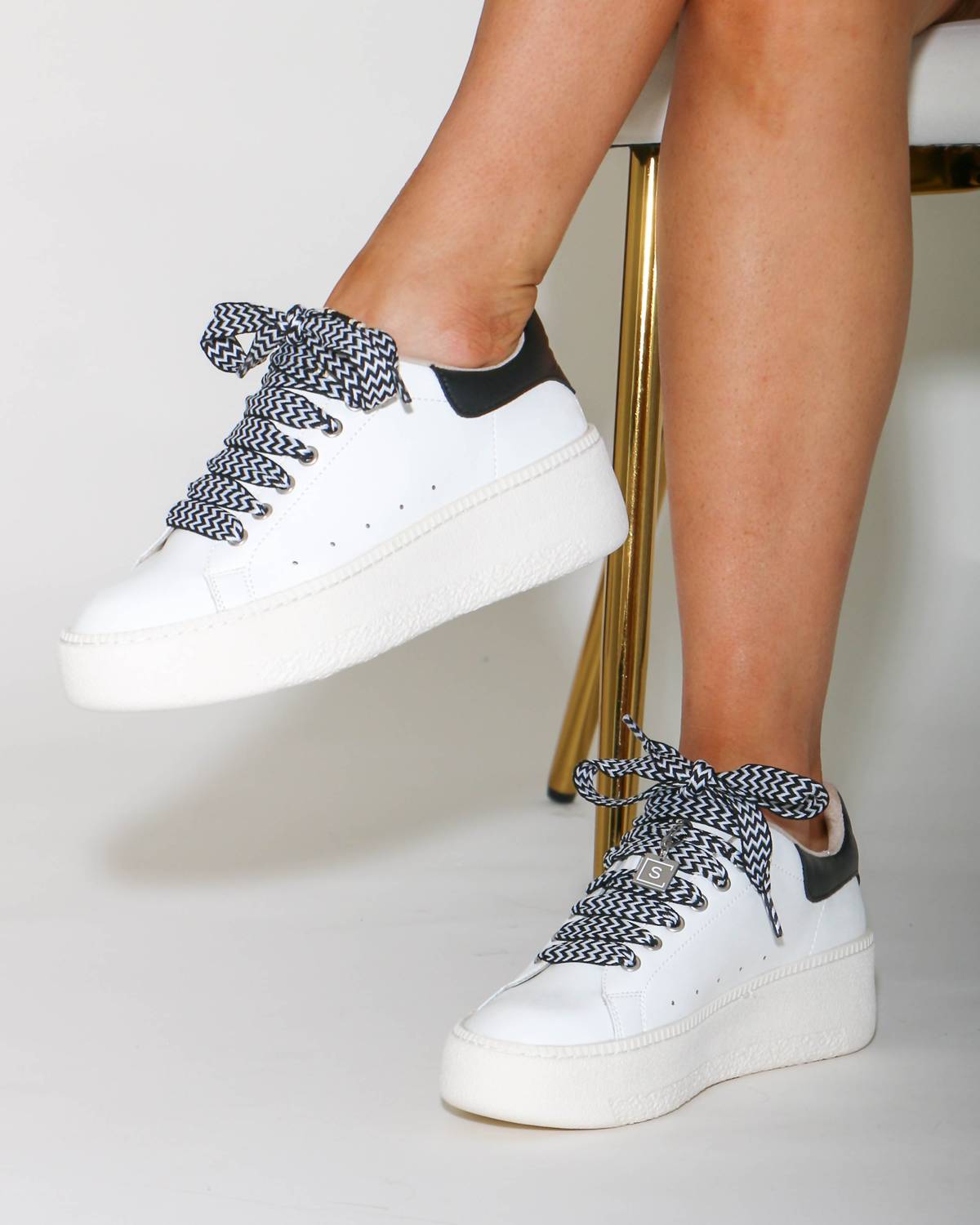 Dê seus passos diários com esses tênis adoráveis. Confeccionados pela SHU SHOP, os tênis Sally são a fusão perfeita de estilo e conforto para a mulher moderna. Com um corpo preto chique, estes tênis apresentam uma plataforma alta de borracha e um solado robusto de borracha, proporcionando uma base firme e um visual moderno. Confeccionados em couro sintético macio e de alta qualidade, eles apresentam painéis em tons vibrantes e um contraforte em bloco de cores, complementado por uma tira minimalista em tom nude contrastante. Estes tênis, com palmilha acolchoada e bico arredondado, foram projetados para serem combinados sem esforço com um terno slim fit para um visual sofisticado.
