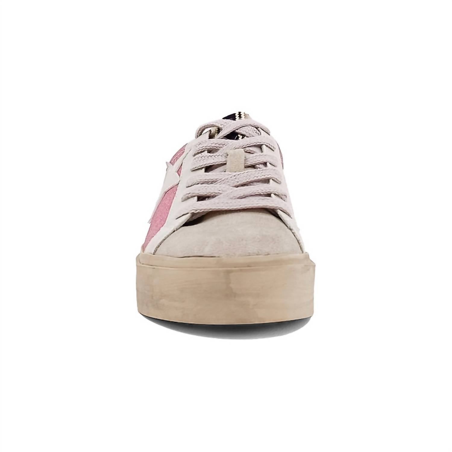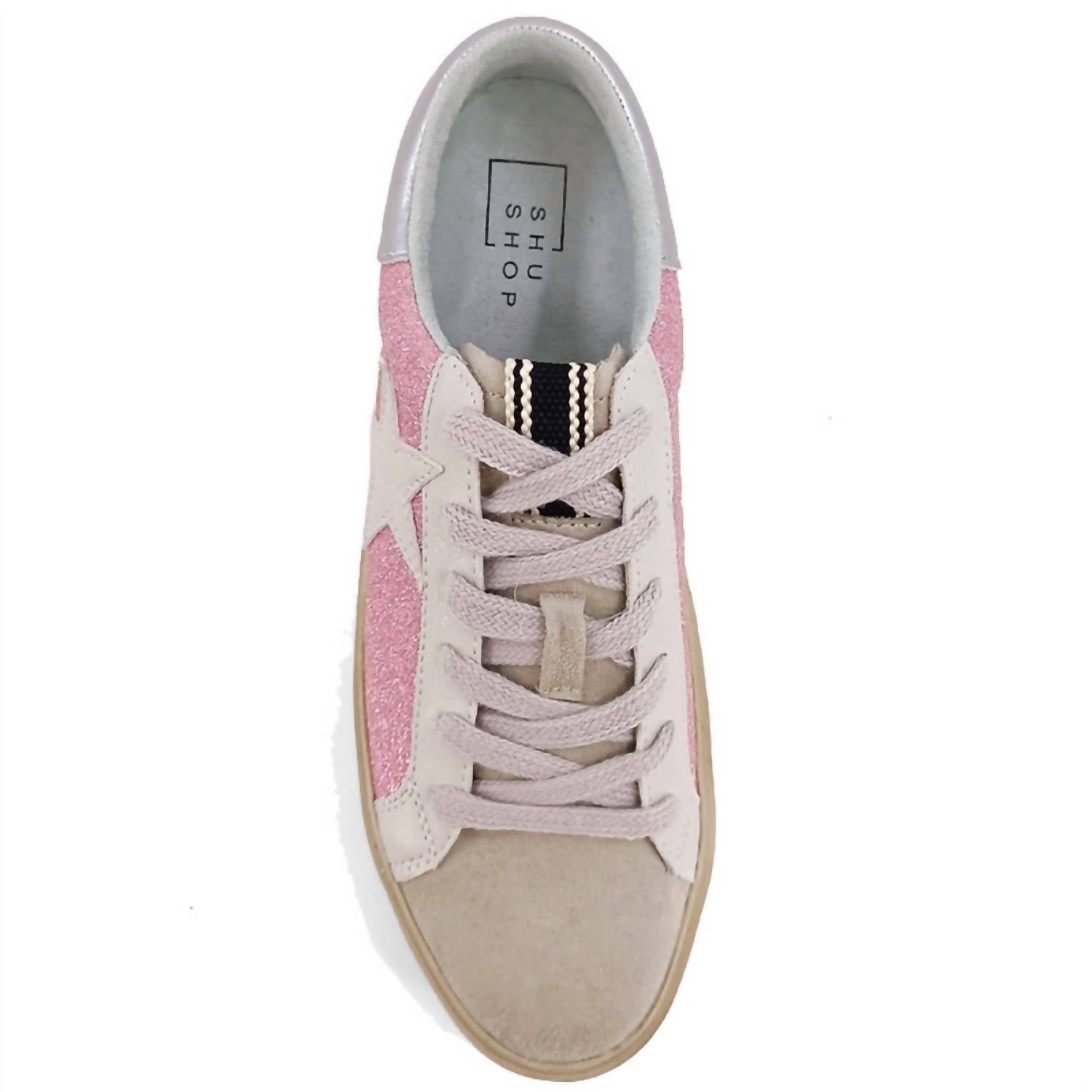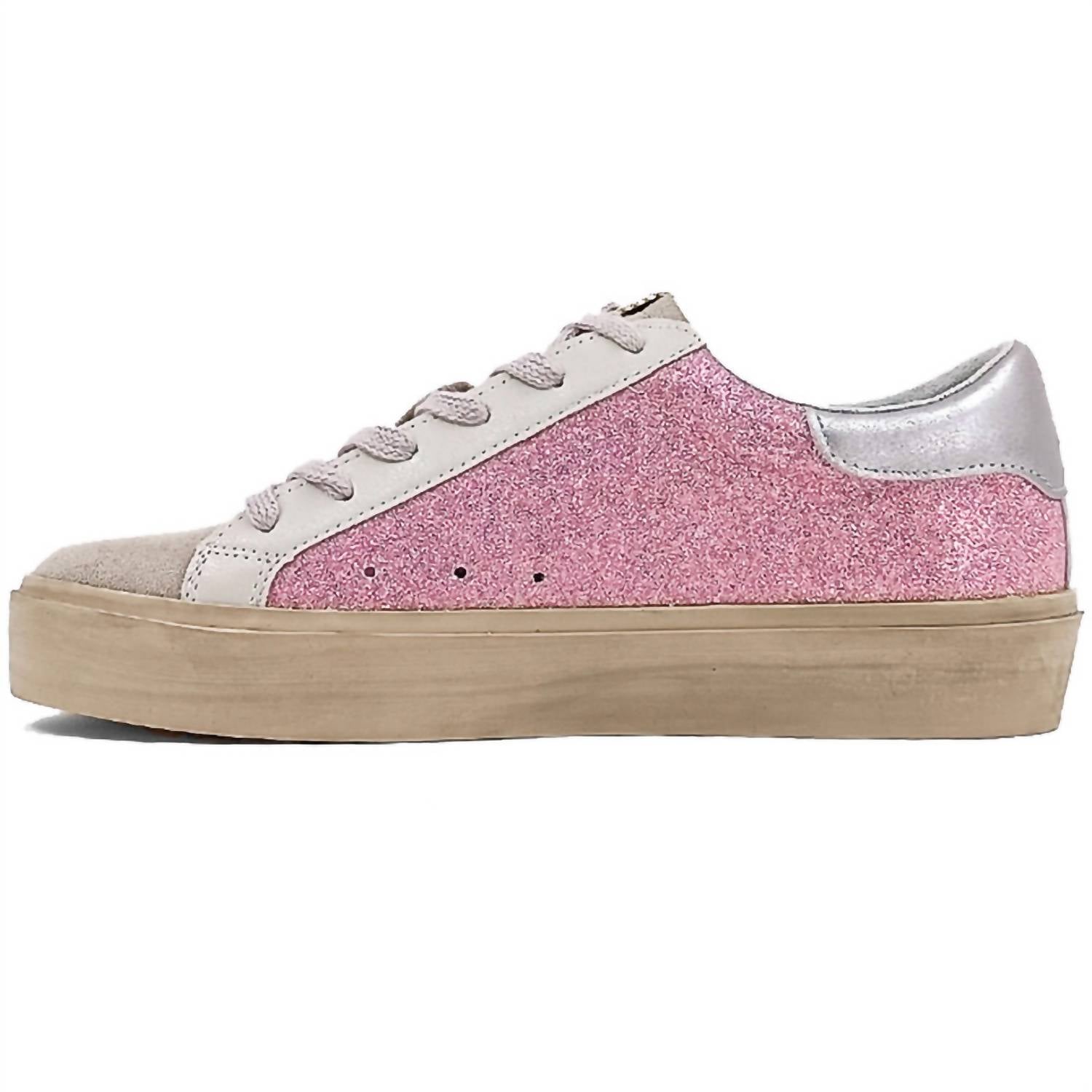 Uma versão clássica e moderna de tênis plataforma em um elegante tom rosa com glitter. Projetado para versatilidade. Apresenta um formato confortável de bico redondo. Com solado robusto e acolchoado, oferece excelente suporte para conforto o dia todo.