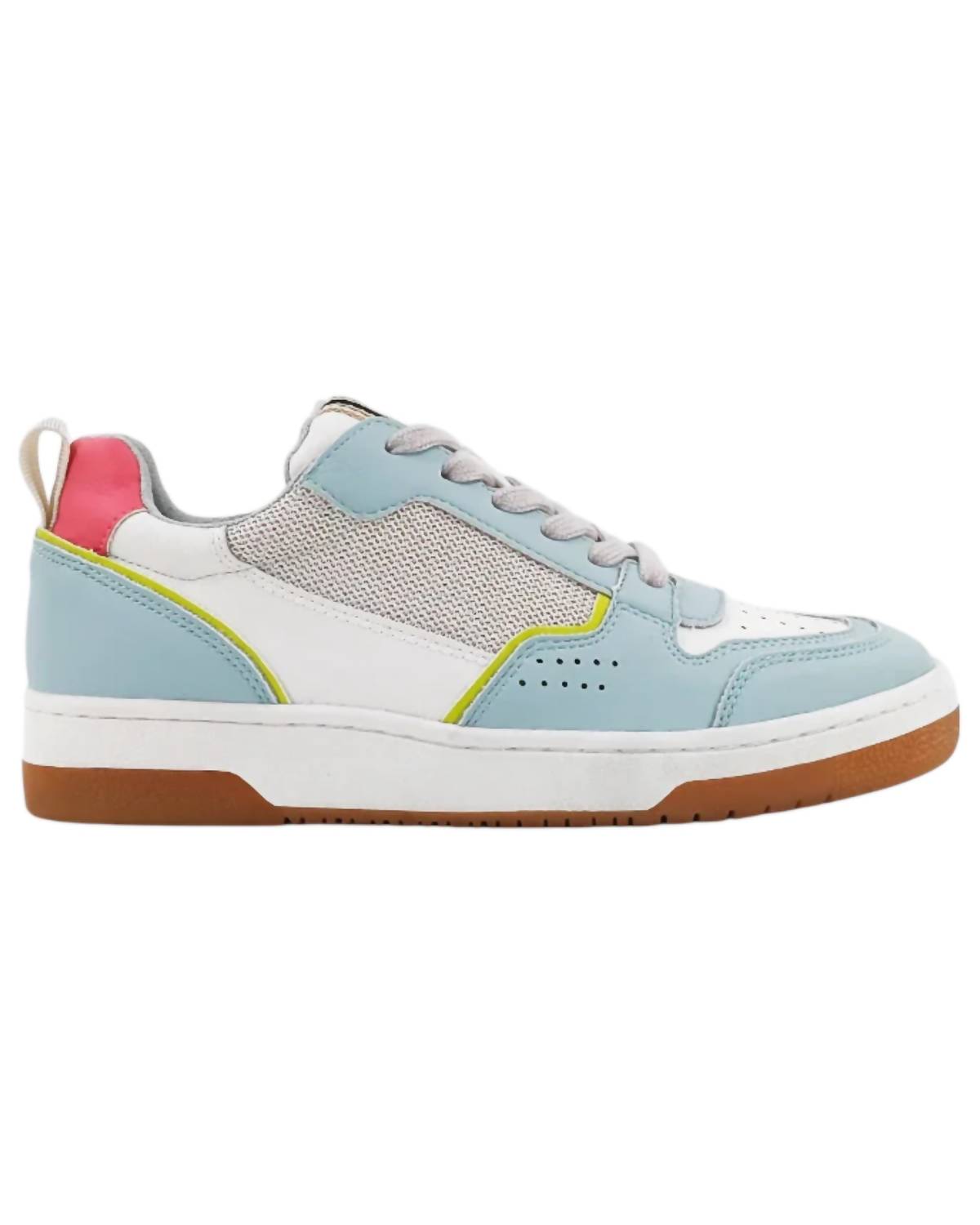 Dê seus passos diários com esses tênis adoráveis. Eleve seu estilo com o Tênis Feminino Romi da SHU SHOP, desenvolvido em um tom Aqua vibrante. Este tênis de cano baixo e moderno oferece uma pegada marcante dos anos 80, com uma mistura de couro sintético macio e colorido, camurça e cabedal em mesh. Seu solado robusto de borracha garante estilo e conforto a cada passo. Com bico arredondado e salto baixo, este tênis oferece um ajuste de largura média, perfeito para o guarda-roupa da mulher moderna.