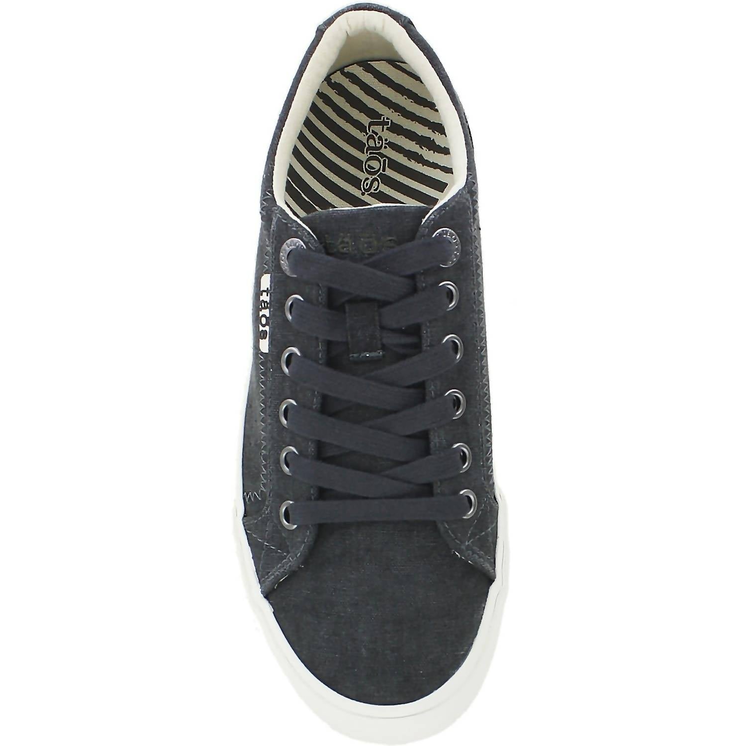 Introducing the Women's Plim Soul Sneaker by Taos, a stylish canvas lace-up sneaker in charcoal designed for optimal comfort and support. This sneaker features a canvas upper and lining with a polyurethane and canvas-covered insole, boasting built-in arch and metatarsal support. The Soft Support technology, with its Cool Recovery Foam, ensures lasting comfort alongside the flexible, durable rubber outsole. Ideal for streetwear and vacation occasions, it offers a round toe shape and flat heel, with customer feedback suggesting to size up by half a size for the best fit.