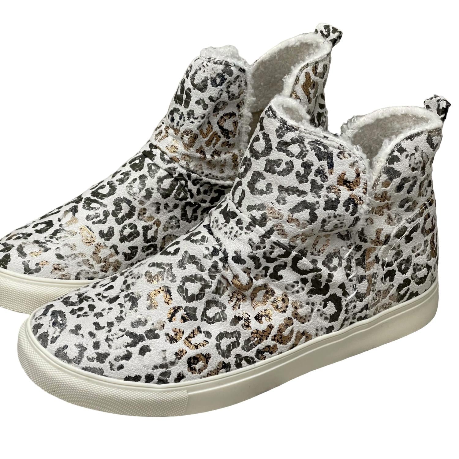 Bonitos, funcionais e confortáveis. Estes tênis atendem a todos os requisitos. Tênis cano alto, estilo slip-on, com bico redondo e palmilha acolchoada, com forro de sherpa para maior aquecimento. Projetados com fecho de zíper lateral e adornados com estampas de oncinha.