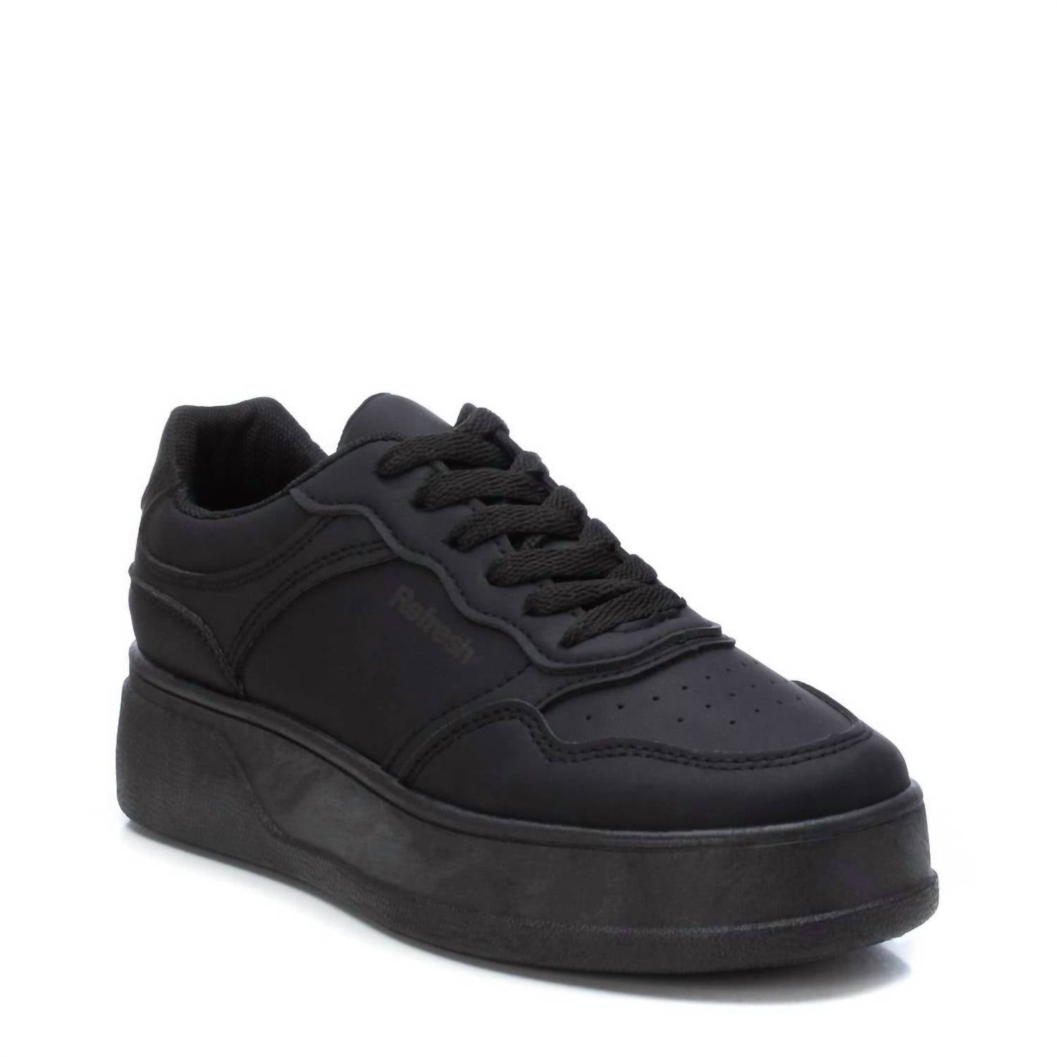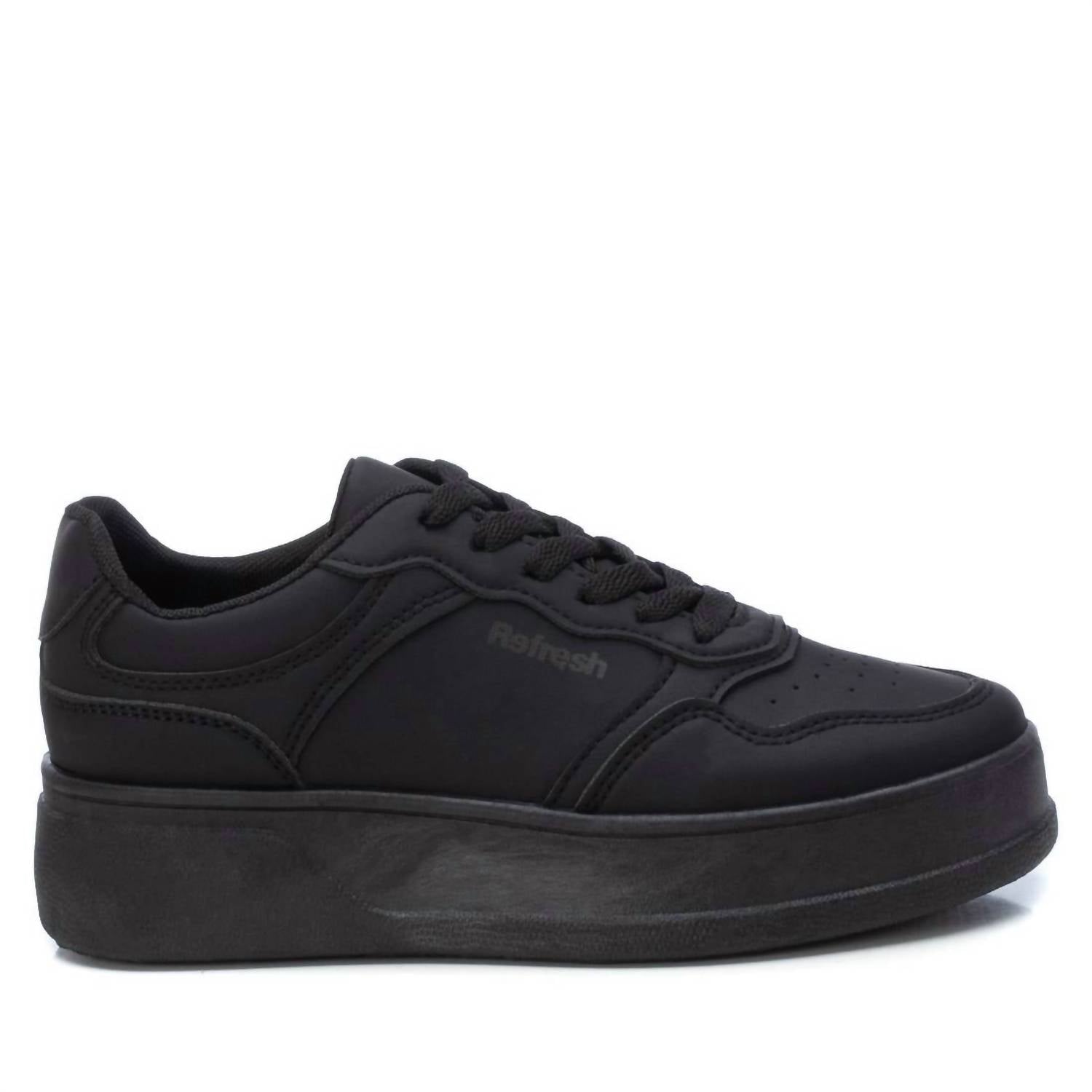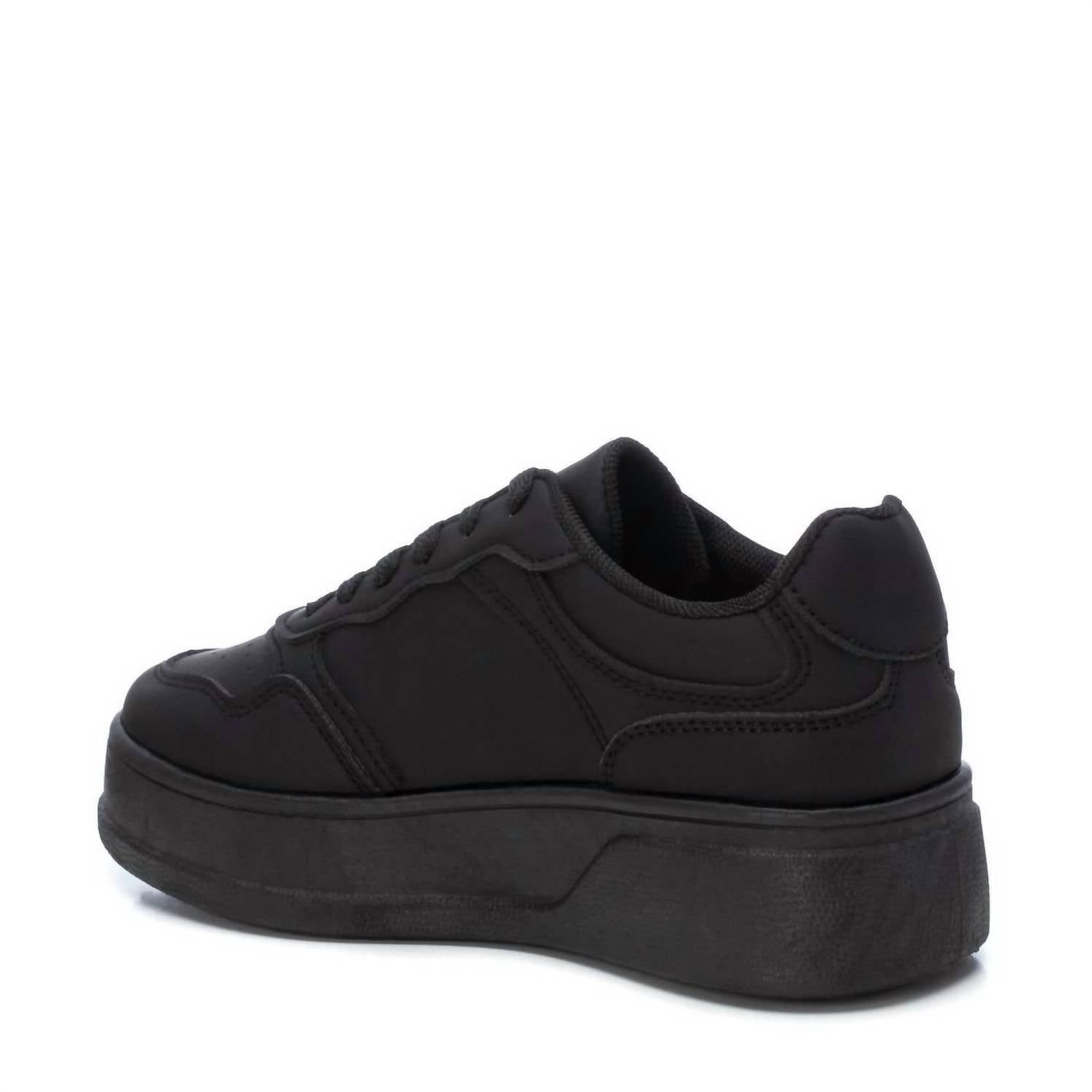 Get your daily steps in with these adorable sneakers. Step into effortless style with the Women's Lace-up Sneakers by Xti. Designed in sleek black, these sneakers feature breathable material and a padded insole, offering premium comfort for your feet. The round toe and flat heel provide a timeless silhouette, with a norm heel height of low (1 1/4"-2") for easy all-day wear. Perfect for travel and celebrating the 90s fashion trend, these sneakers ensure a secure fit with laces and are equipped with a non-slip rubber sole for reliable traction.