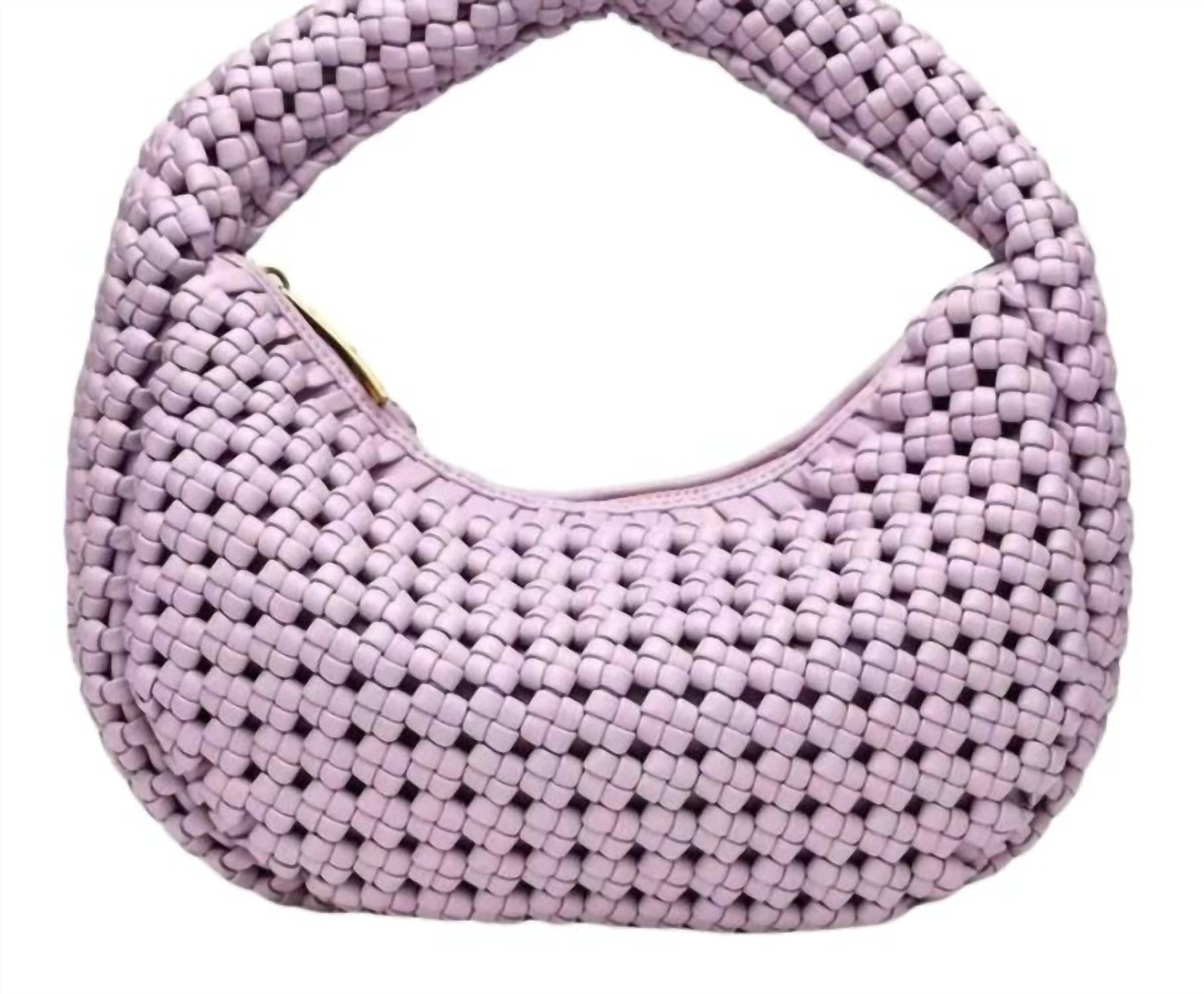 Introducing the Millie Woven Bag by ACCESSORY CONCIERGE in a stunning lilac hue, crafted from soft, woven faux leather for a luxurious yet durable finish. Measuring 12" in length, 4" in width, and 9" in height, this bag is both stylish and practical. The interior is fully lined and features a functional interior zipper pouch. It secures with a brass zipper closure, making it a versatile accessory for any outfit.