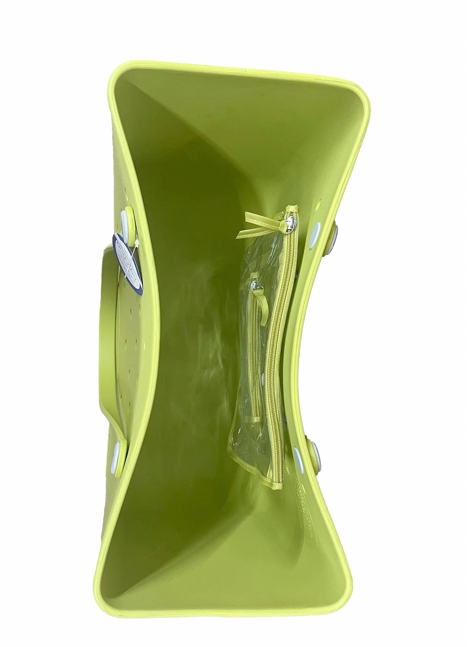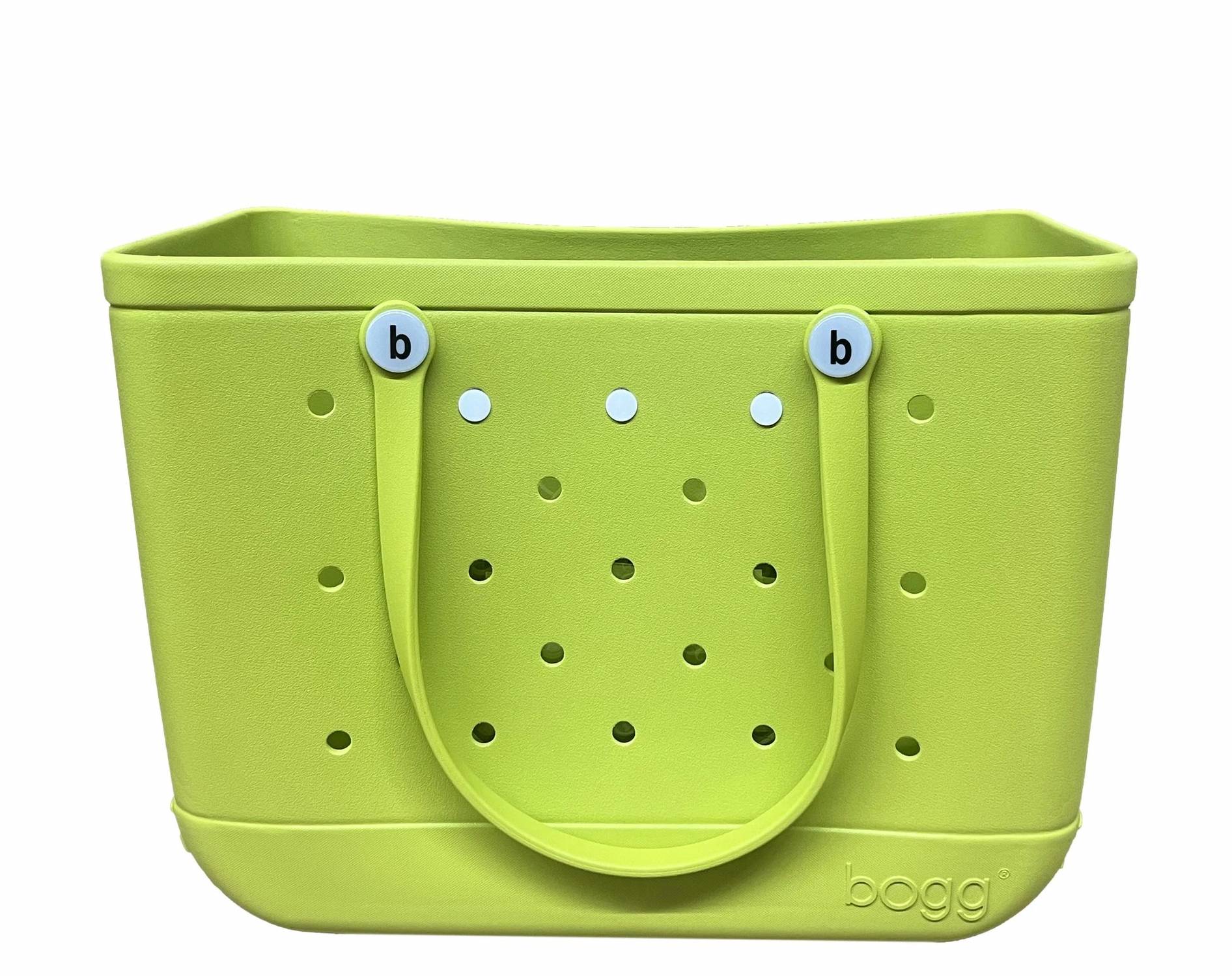 Introducing the Women's Original Tote Bag Large by Bogg Bags, a vibrant Lime Green shoulder bag crafted for convenience and style. Made from flexible EVA, this spacious tote is perfect for all your essentials. With dimensions of 19" width, 9.5" depth, and 15" height, it provides ample space for a day out or a trip to the beach. Embrace functionality without compromising on flair with this eye-catching piece.