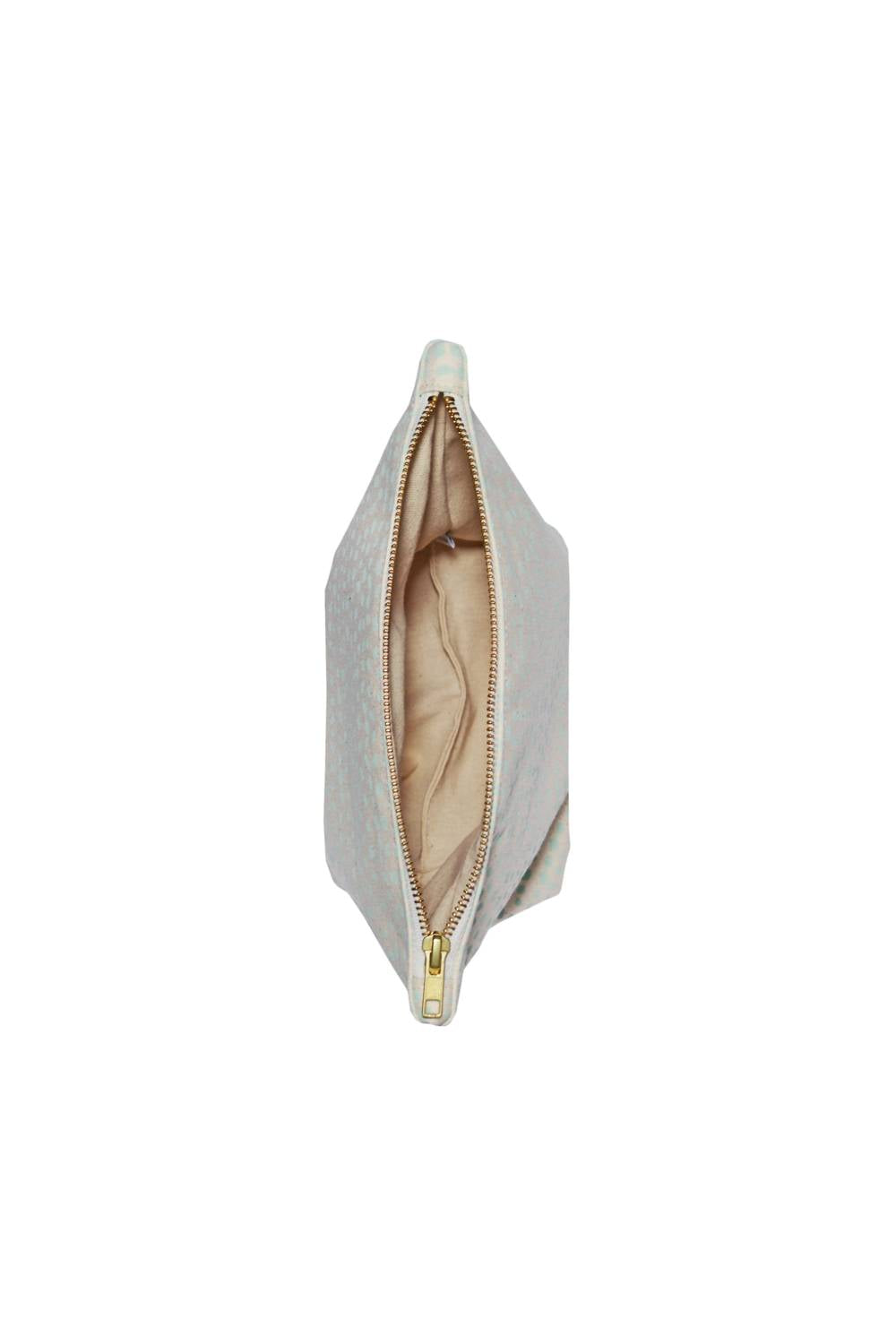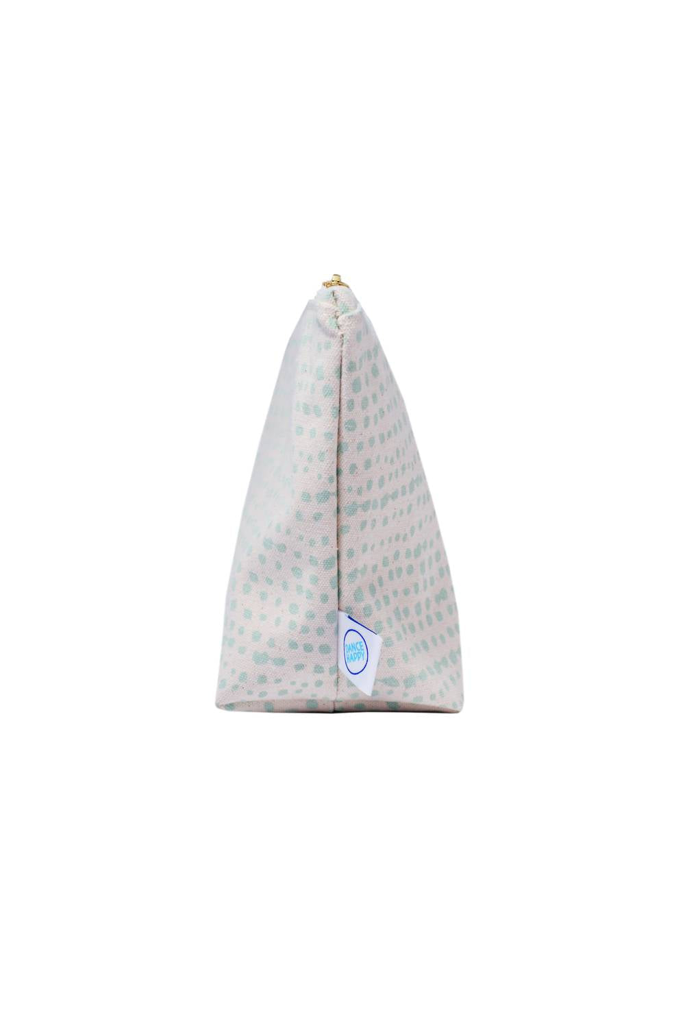 Esta bolsa com zíper em lona de algodão tem o tamanho perfeito para guardar seus itens essenciais sem ocupar muito espaço na mala. Apresenta um padrão de bolinhas desenhado à mão em serigrafia em sálvia e é forrada com algodão orgânico para um toque ecológico. Feita em lona de algodão durável de 425 g, mede aproximadamente 27,5 cm x 18,7 cm, com um fundo reforçado de 10 cm para maior espaço. O zíper de latão garante um fechamento seguro e a serigrafia utiliza tinta ecológica e atóxica. Lavar somente à mão (de preferência, limpeza localizada). Feito à mão nos EUA.