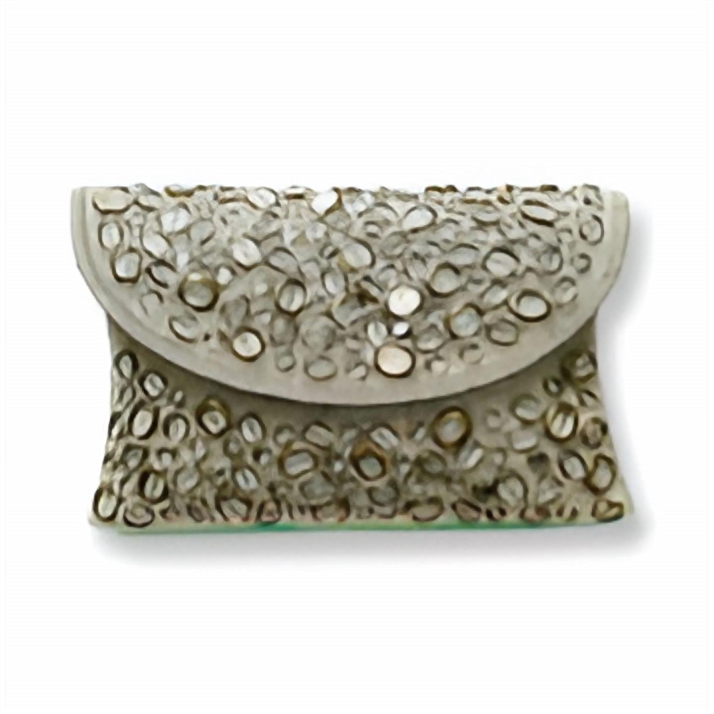 The perfect clutch for an evening out on the town. Experience the exquisite craftsmanship of the Women's Stone Beaded Handbag by David Jeffery, a luxurious accessory in a natural hue. This handcrafted piece features soft natural beads accented with subtle silver and gold lines, enhanced by sparkling crystal stones. Made from leather, it includes a snap closure and two interchangeable straps for added versatility. Care: Dry cleaning recommended.