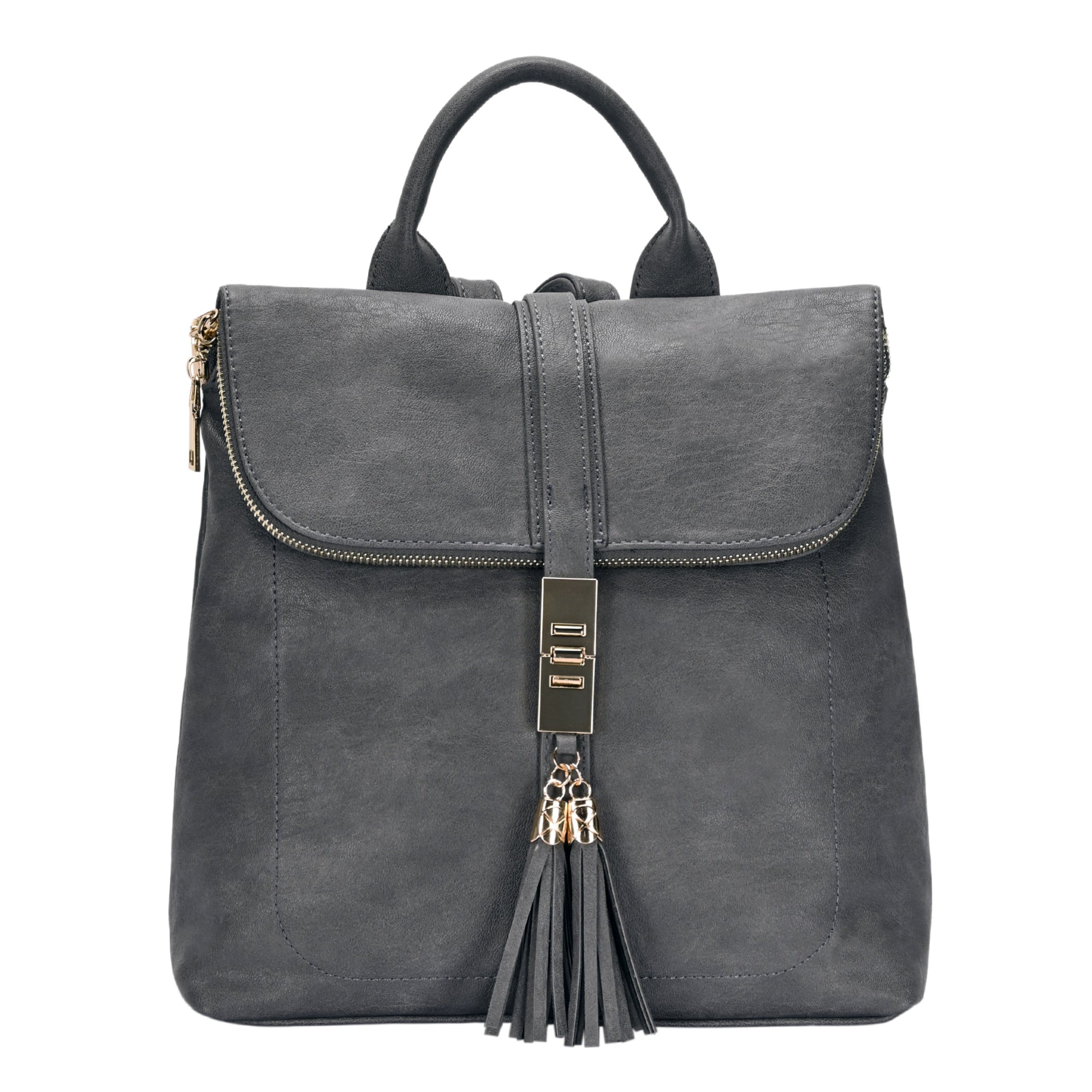 Step into a world of chic sophistication with the Diana Backpack by Miztique. Crafted from luxurious vegan leather, this cult classic is designed for the modern woman who values both style and functionality. The elegant gold hardware and playful tassel embellishments add a touch of glamour, while the flap-over design allows for quick access to your essentials. Whether you’re headed to the office, out for a day of shopping, or exploring a new city, the Diana Backpack is your perfect companion. With dual entry options, including a top zipper and a secure push-lock flap, and a bonus back pocket for added convenience, this backpack combines practicality with a polished aesthetic.