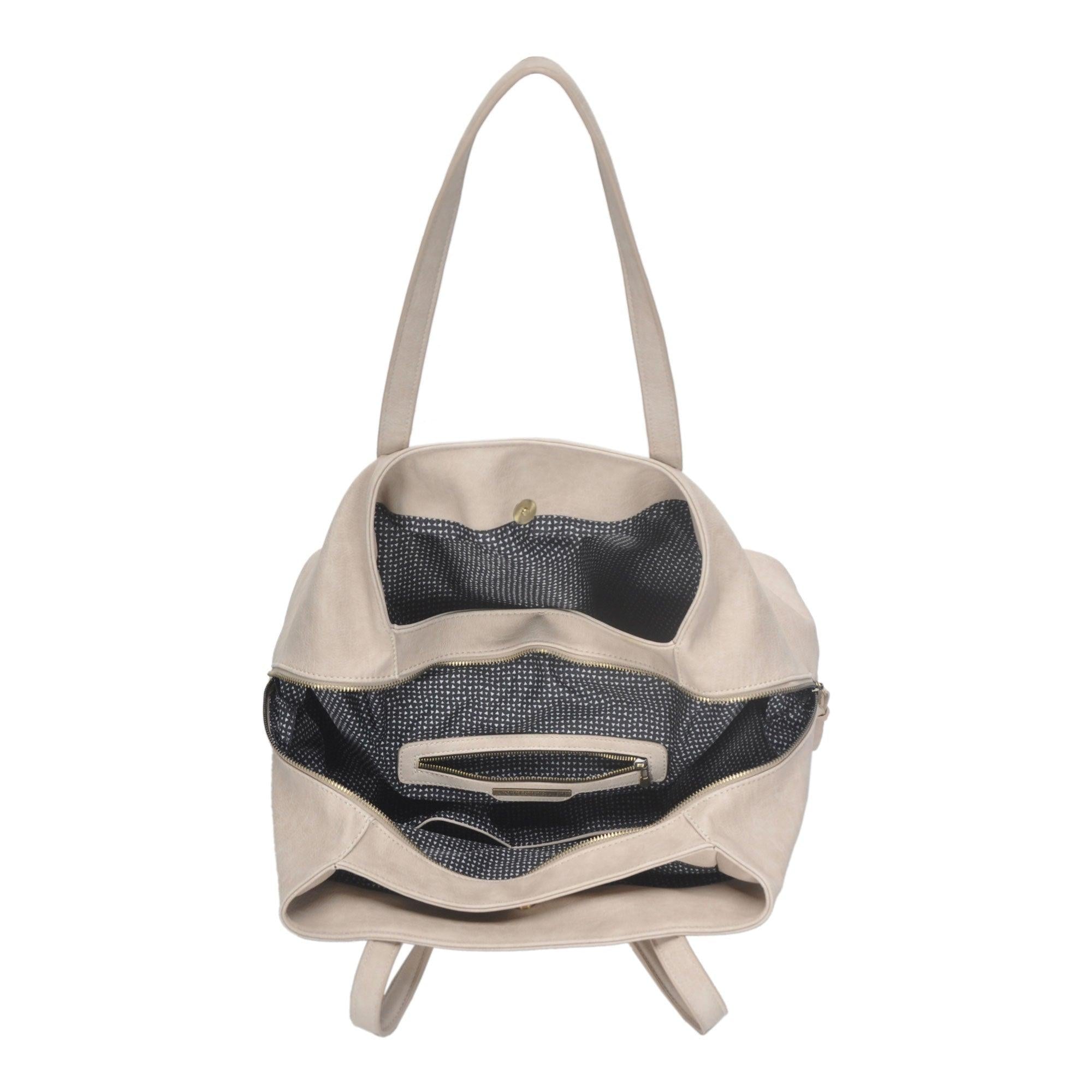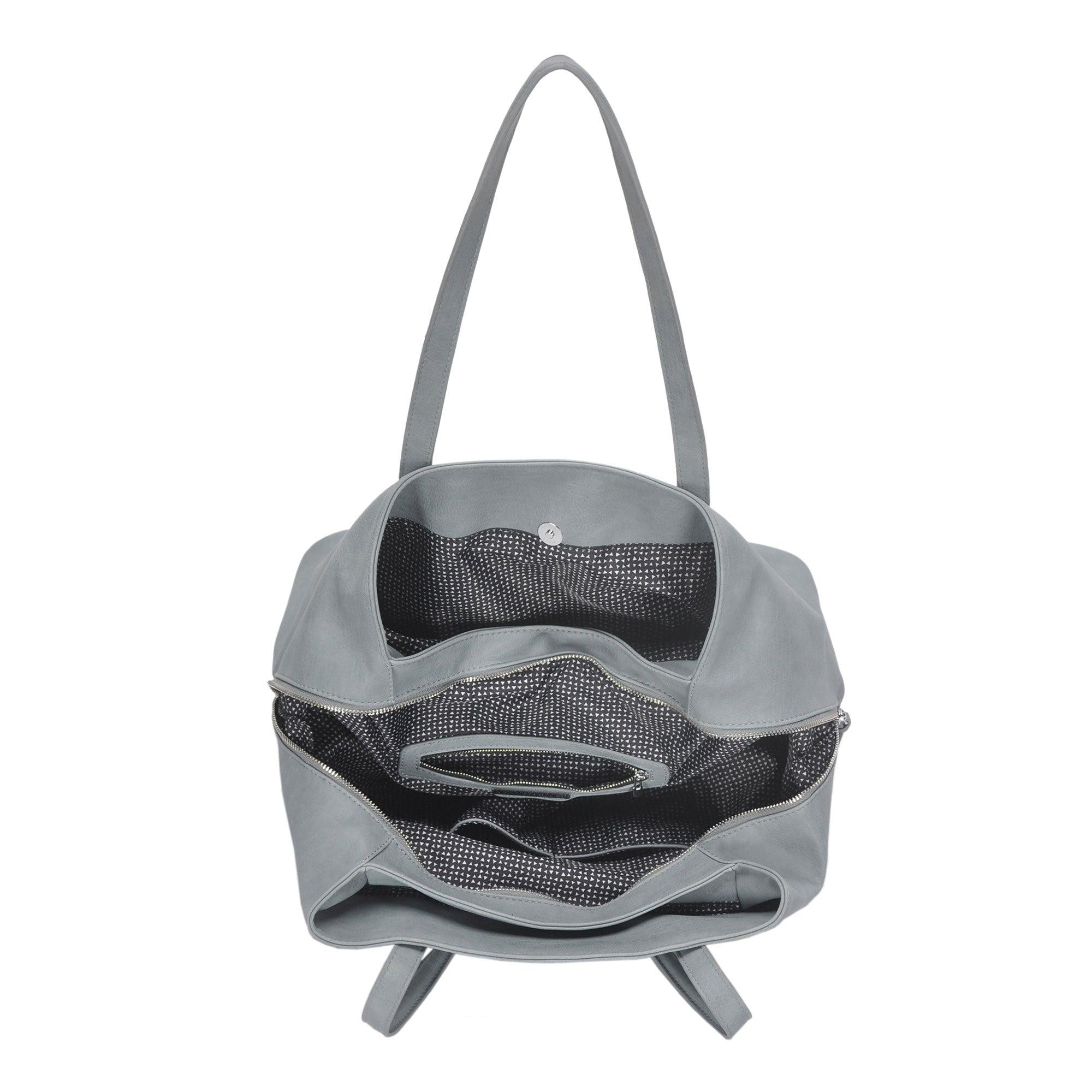 This multi-compartment Erica Tote provides ample storage space for your everyday needs, or when you head out of town. Its distressed material is comfortable and fits conveniently over the shoulder. You won't have to worry about misplacing your valuables with the detachable pouch, perfect for holding your phone, wallet, and keys.