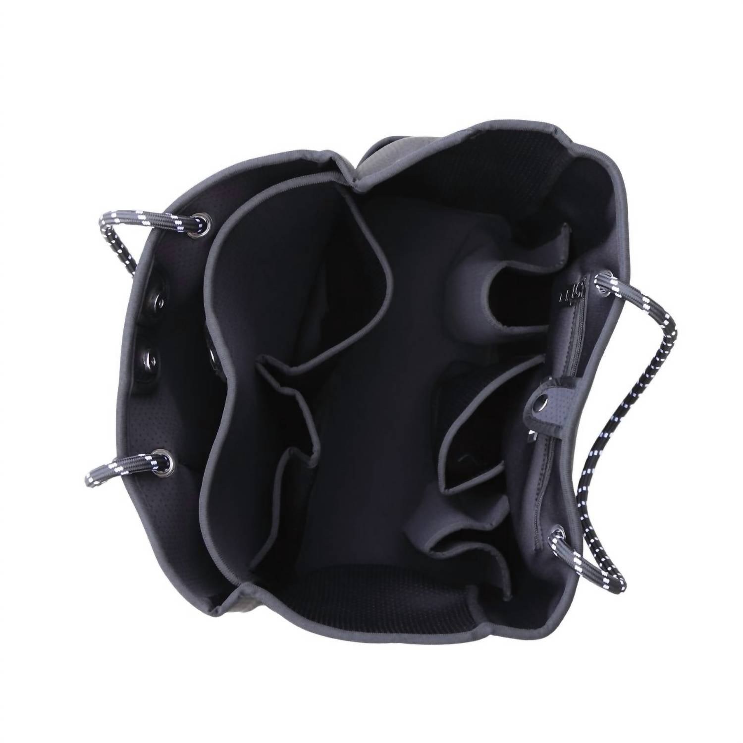 A bolsa tote multifuncional da estação. Entre no clima de férias com esta bolsa tote de tamanho perfeito, o acessório perfeito para dias de praia, festas na piscina ou jantares ao pôr do sol. Apresentamos a Bolsa Tote Feminina Courtside Grande para Raquetes de Tênis da Five Love, uma escolha sofisticada e funcional tanto para o tênis quanto para as aventuras do dia a dia. Esta bolsa, confeccionada em neoprene resistente, vem em um elegante preto e branco com detalhes em prata. Com dimensões de 40 cm de comprimento x 38 cm de altura x 18 cm de largura, ela oferece amplo espaço para acomodar até duas raquetes de tênis e itens essenciais adicionais. A manutenção desta bolsa versátil é fácil, bastando lavá-la na máquina em ciclo frio e suave.