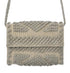 The Arrecife Clutch by Guadalupe Design is a stylish grey accessory crafted from durable cotton canvas. Measuring 9 inches high by 11 inches wide, it features a convenient fold-over flap closure and a removable handle for versatility. The shoulder strap extends up to 25 inches, offering comfort when worn. Perfect for adding a chic touch to any outfit.