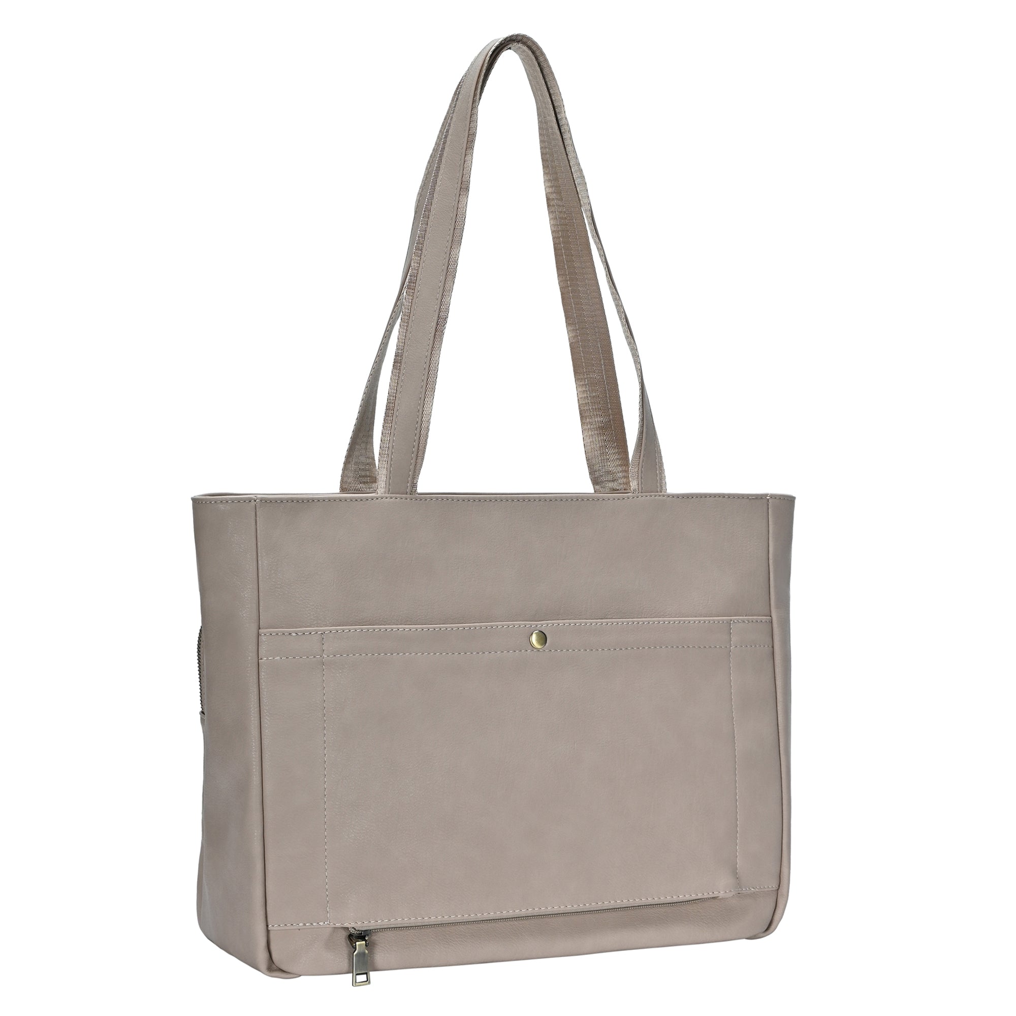 Introducing the Harper Travel Tote, a fashionable and functional accessory designed with precision. Constructed with strong vegan leather, it radiates sophistication and class. With generous storage including a main chamber, interior slots, and compartments, carrying your items is effortless. This tote also includes a specialized laptop sleeve (up to 16in), a zippered outer pocket, a traveling trolley sleeve, and comfortable, robust handles. Lightweight and easy to clean, this adaptable tote effortlessly transitions from work to leisure time, ideal for any excursion. Invest in the Harper Travel Tote for a combination of style, practicality, and superior quality.