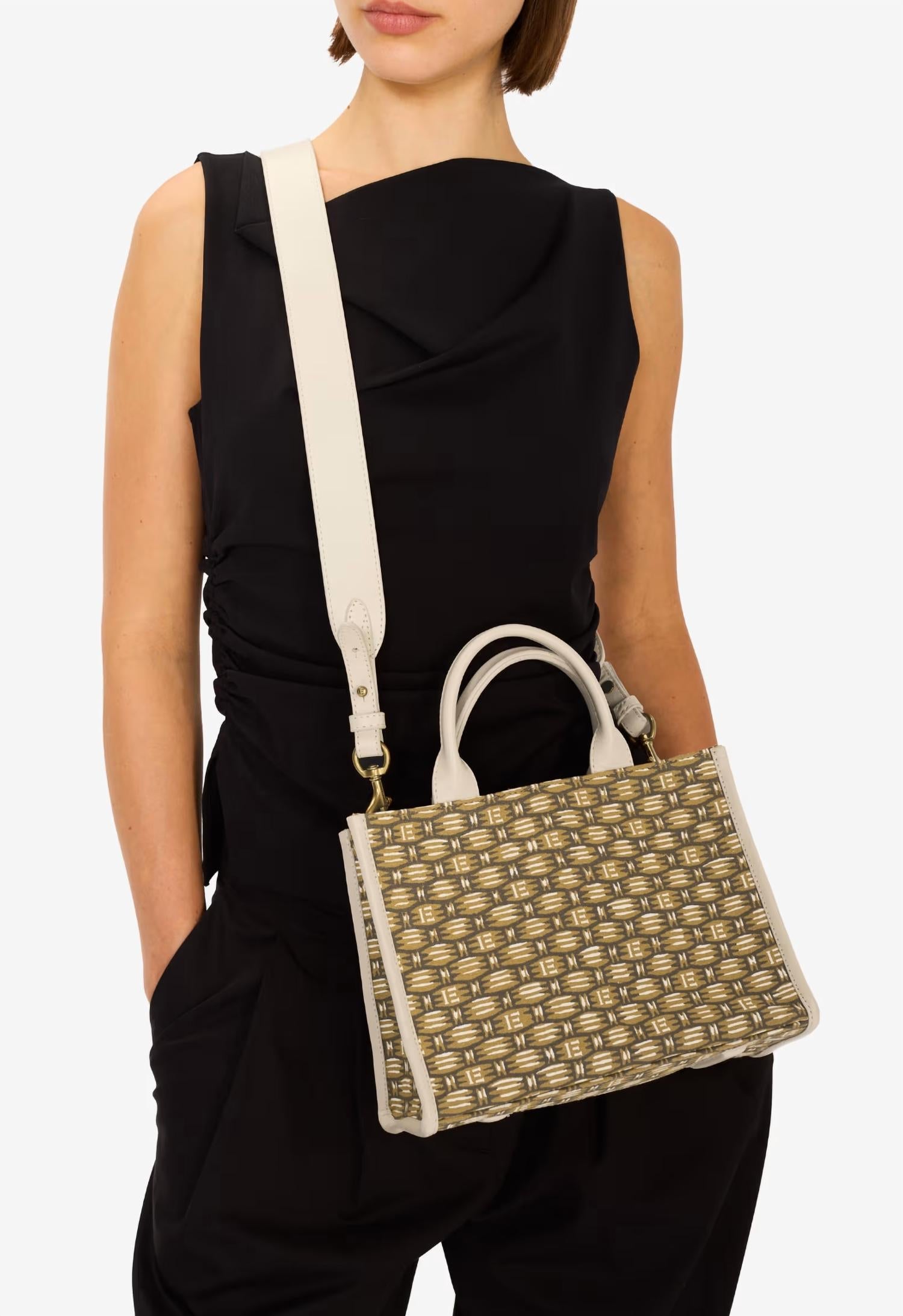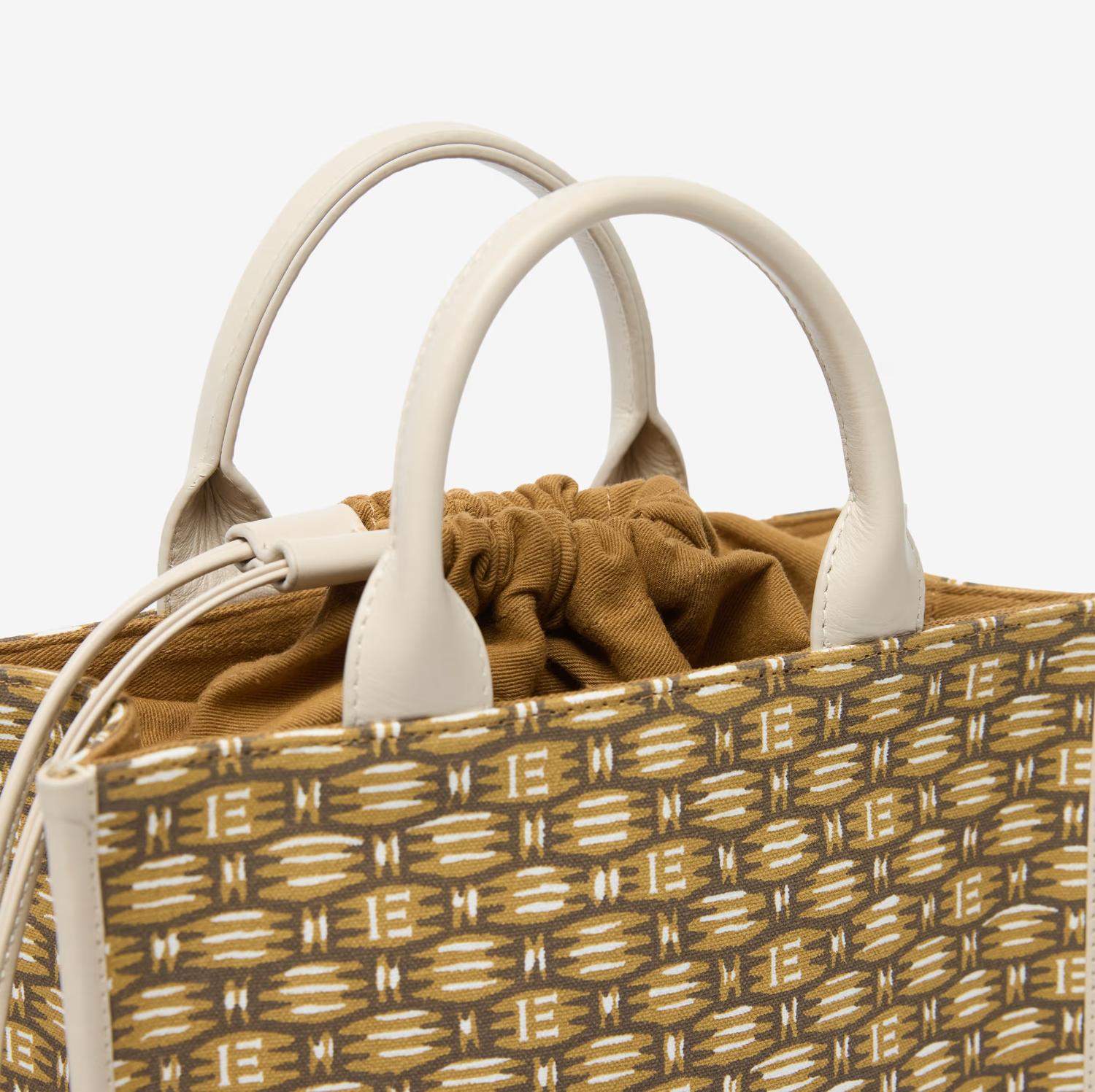 Experience the chic versatility of the Women's Caprice Bag by Inoui Editions, an essential in Cannage Khaki. This bag is crafted from 100% cotton and features sleek Italian leather handles and finishing details. Measuring 26 x 19 x 11 cm, it offers a compact yet practical design, complete with two handles and a functional shoulder strap. Made in India, this stylish piece embodies the timeless elegance of Inoui's iconic bag collections.