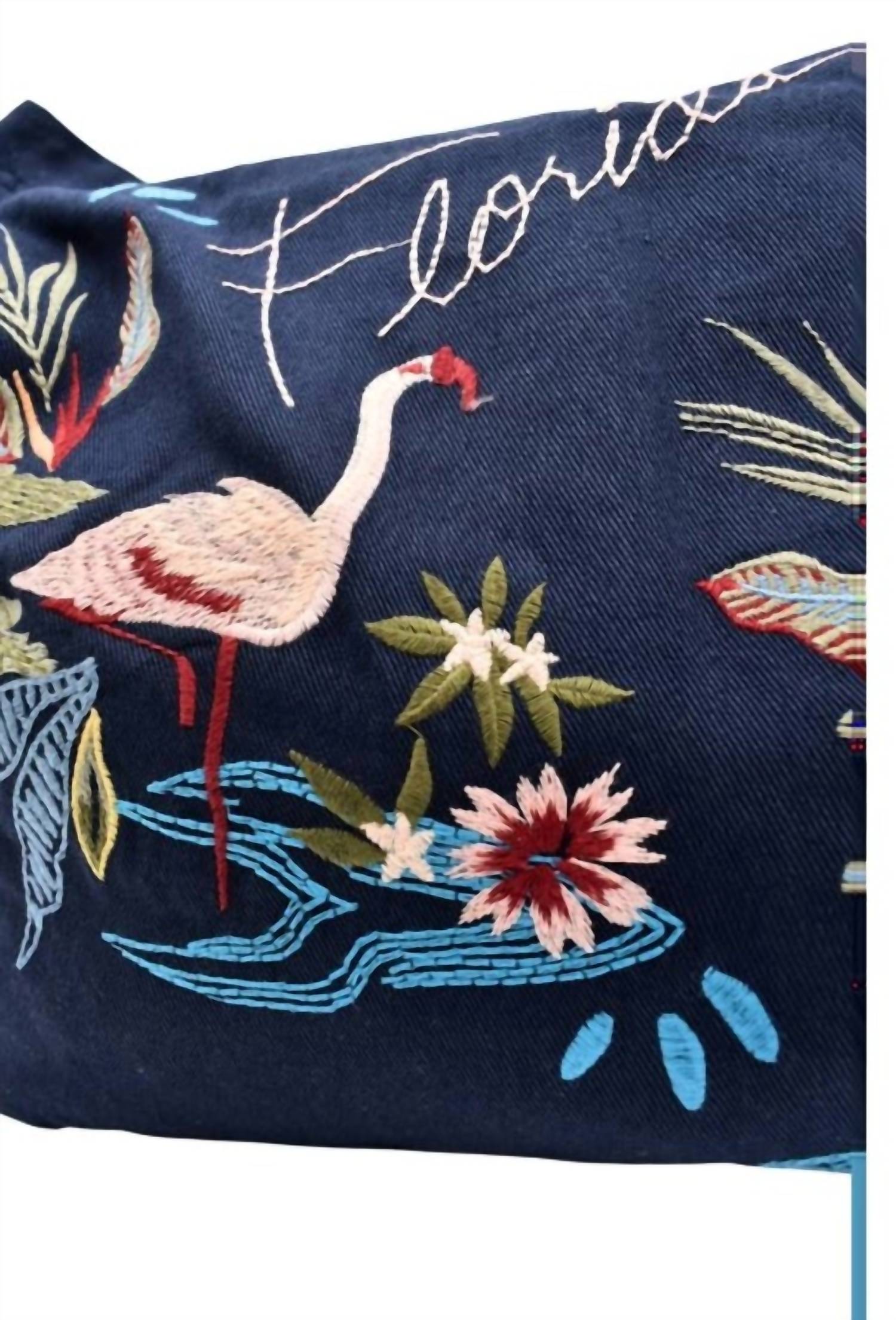**Florida Strong!** Celebrate the vibrant spirit of the "Sunshine State" with the Florida Everyday Tote. This tote is crafted from 100% cotton and has a spacious interior, making it the perfect accessory for daily activities. The colorful embroidery adds a whimsical touch to your look, while the inside zip pocket provides convenient storage.