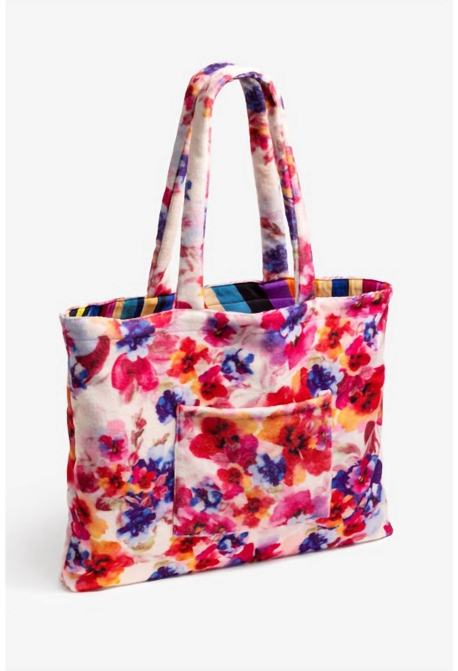 A bolsa tote multifuncional da estação. Entre no clima de férias com esta bolsa tote de tamanho perfeito, o acessório perfeito para dias de praia, festas na piscina ou jantares ao pôr do sol. A Bolsa de Praia Terry Summer Days é 100% algodão e apresenta cores vibrantes. Possui alças duplas e parte superior aberta para fácil acesso. Totalmente forrada, esta bolsa é reversível e inclui um bolso externo para itens menores. Combine-a com o biquíni Summer Days e chinelos confortáveis para um look perfeito para um dia de praia. 100% algodão