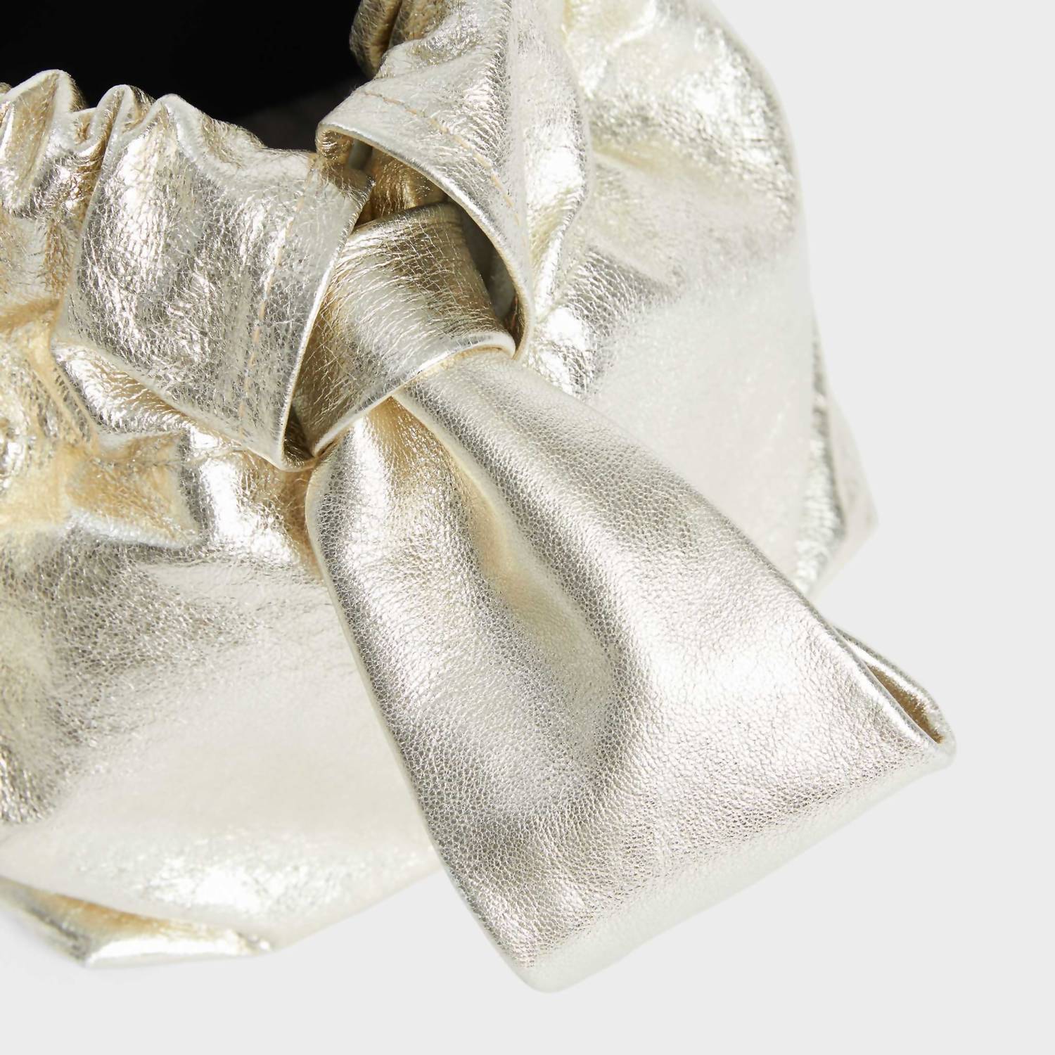 Pequeno em tamanho, mas um verdadeiro chamariz. Apresentamos a Bolsa Clutch Feminina Mariposa Twist da Lemiz em um tom prateado marcante, feita à mão em couro de cordeiro italiano macio. Com um design cuidadoso e uma alça de pulso, esta bolsa garante a praticidade de quem não precisa usar as mãos, tornando-a uma companheira de viagem ideal. Seu design suave é complementado por um forro de lona de algodão e um bolso interno para organização, acomodando confortavelmente um iPhone Max. Feita à mão em Los Angeles, esta mini bolsa tem dimensões de 16,5 cm de largura, 16,5 cm de profundidade e 18 cm de altura, perfeita para transportar seus itens essenciais.