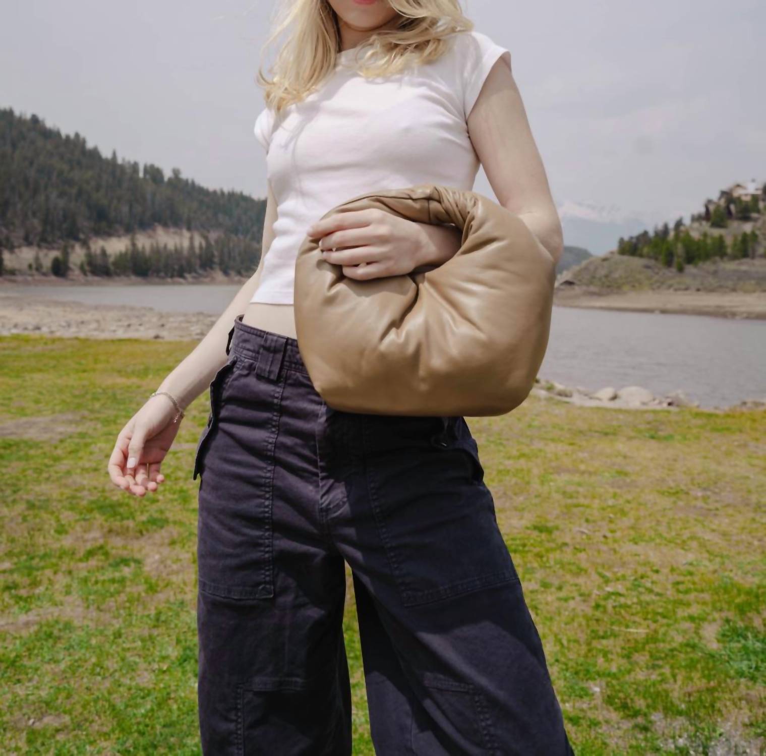 Nunca é demais ter bolsas e esta bolsa hobo não é exceção. A Bolsa Feminina Mello com Alça Superior da Lemiz é uma peça marcante, confeccionada com um design bufante, semelhante a uma nuvem, em pele de cordeiro branca. Seu formato inspirado em marshmallows não só destaca a qualidade excepcional do couro, como também oferece um refúgio aconchegante para seus itens essenciais. Com dimensões de 23,2 cm de altura, 29,9 cm de largura e 21,6 cm de profundidade, ela oferece um interior espaçoso e elegante. Esta bolsa combina perfeitamente praticidade com beleza tátil, tornando-se uma adição luxuosa a qualquer guarda-roupa.