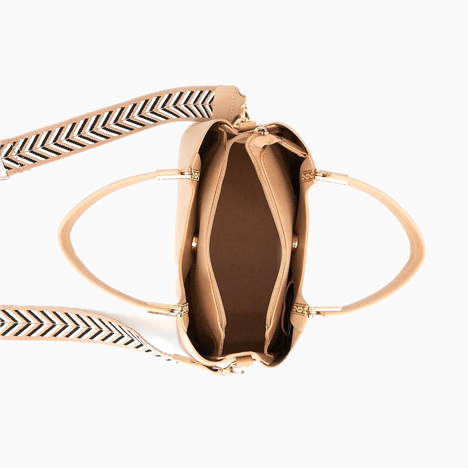 Esta bolsa transversal será sua bolsa preferida da estação. Descubra a Bolsa Transversal Vegana Ava Simpler Times da Like Dreams, uma adição elegante à sua coleção. Esta bolsa espaçosa, confeccionada em couro vegano macio na cor bege, possui uma alça removível estampada para um estilo personalizado. Com dimensões de 25 cm de largura, 18 cm de altura e 11 cm de profundidade, inclui zíper e fechos magnéticos duplos para armazenamento seguro, complementados por elegantes ferragens douradas. O interior possui forro de poliéster, tornando-a uma opção prática e elegante para o uso diário. Peso total: 500 g.