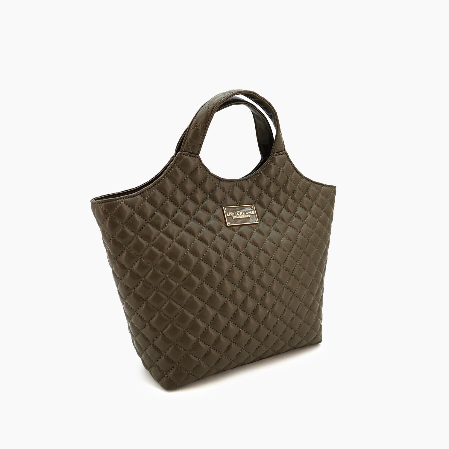 Além de ser a bolsa mais fofa do mundo, esta bolsa tote tem o tamanho perfeito para guardar todos os seus itens essenciais para as férias. Combine esta bolsa adorável com um vestido fluido e uns chinelos e pronto! A Bolsa Tote Juliet Vegan Quilted Feminina da Like Dreams é um acessório elegante na cor verde-oliva, perfeita para o uso diário com seu design chique. Feita em couro vegano, esta bolsa oferece um interior espaçoso com dimensões de 30 cm de largura x 29 cm de altura x 11,5 cm de profundidade, acomodando itens essenciais de médio a grande porte. Possui fecho de zíper para maior segurança e inclui um compartimento principal, um bolso interno com fenda e um bolso interno com zíper para armazenamento organizado. A versatilidade desta bolsa é reforçada por uma alça superior de 12 cm e uma alça de corrente de 60 cm, permitindo que você a use como alça de mão ou transversal.