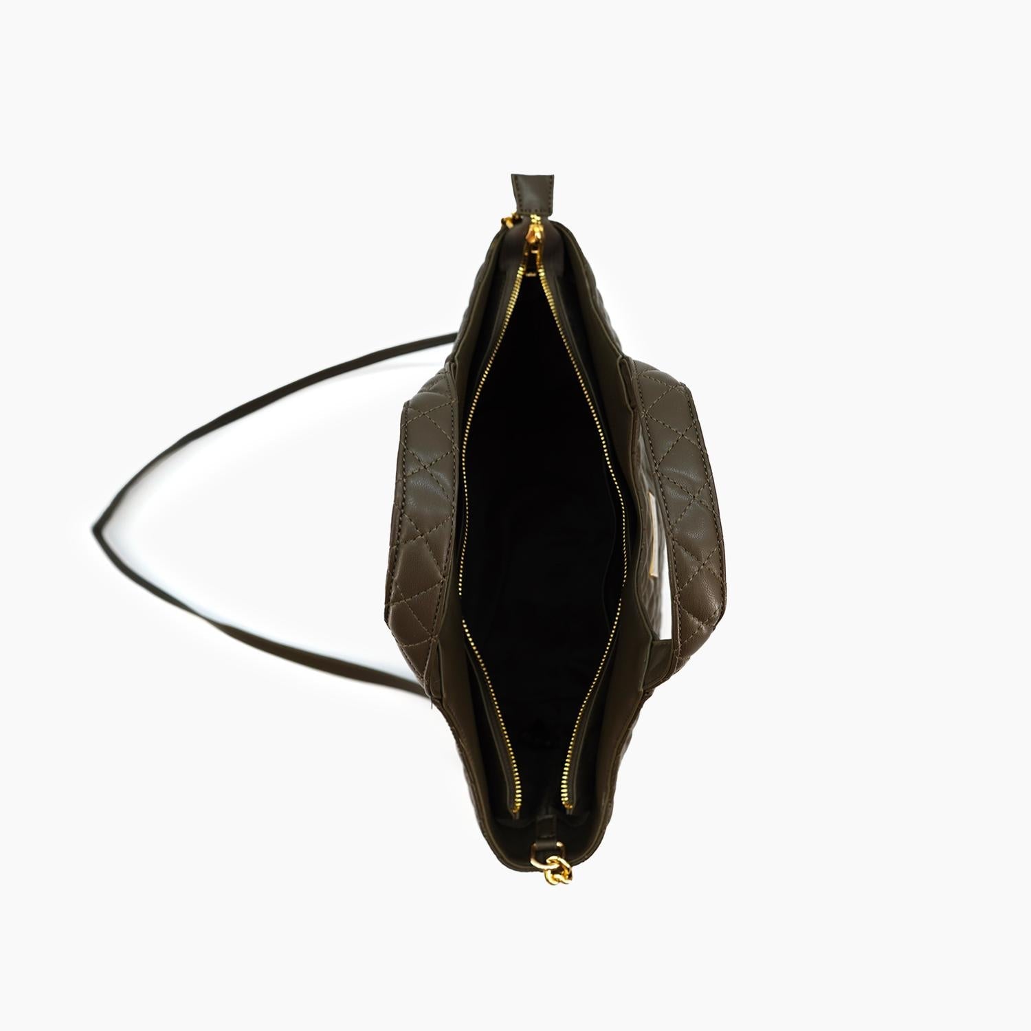 A Bolsa Tote Juliet Vegan Quilted Feminina da Like Dreams é um acessório elegante na cor verde-oliva, perfeita para o uso diário com seu design chique. Feita em couro vegano, esta bolsa oferece um interior espaçoso com dimensões de 30 cm de largura x 29 cm de altura x 11,5 cm de profundidade, acomodando itens essenciais de médio a grande porte. Possui fecho de zíper para maior segurança e inclui um compartimento principal, um bolso interno com fenda e um bolso interno com zíper para armazenamento organizado. A versatilidade desta bolsa é reforçada por uma alça superior de 12 cm e uma alça de corrente de 60 cm, permitindo que você a use como alça de mão ou transversal.
