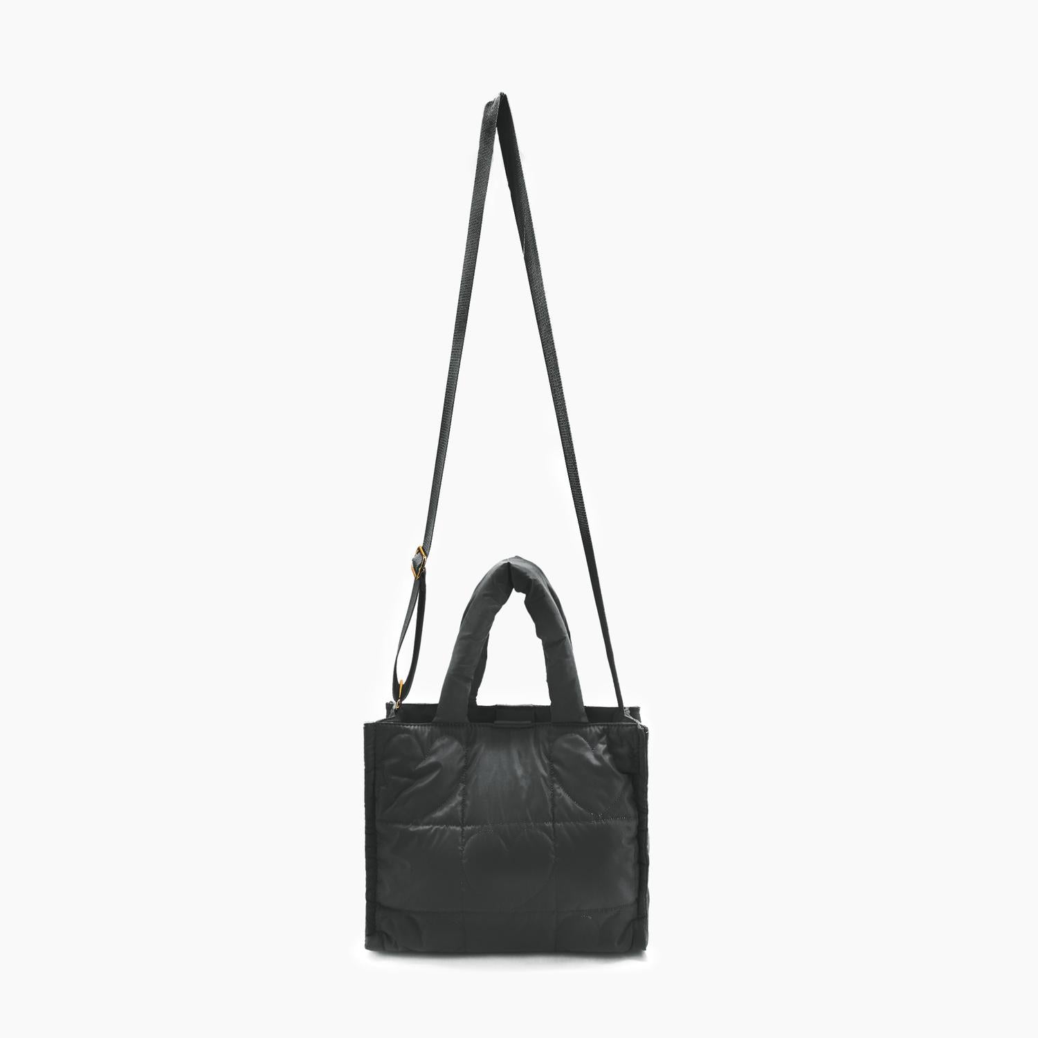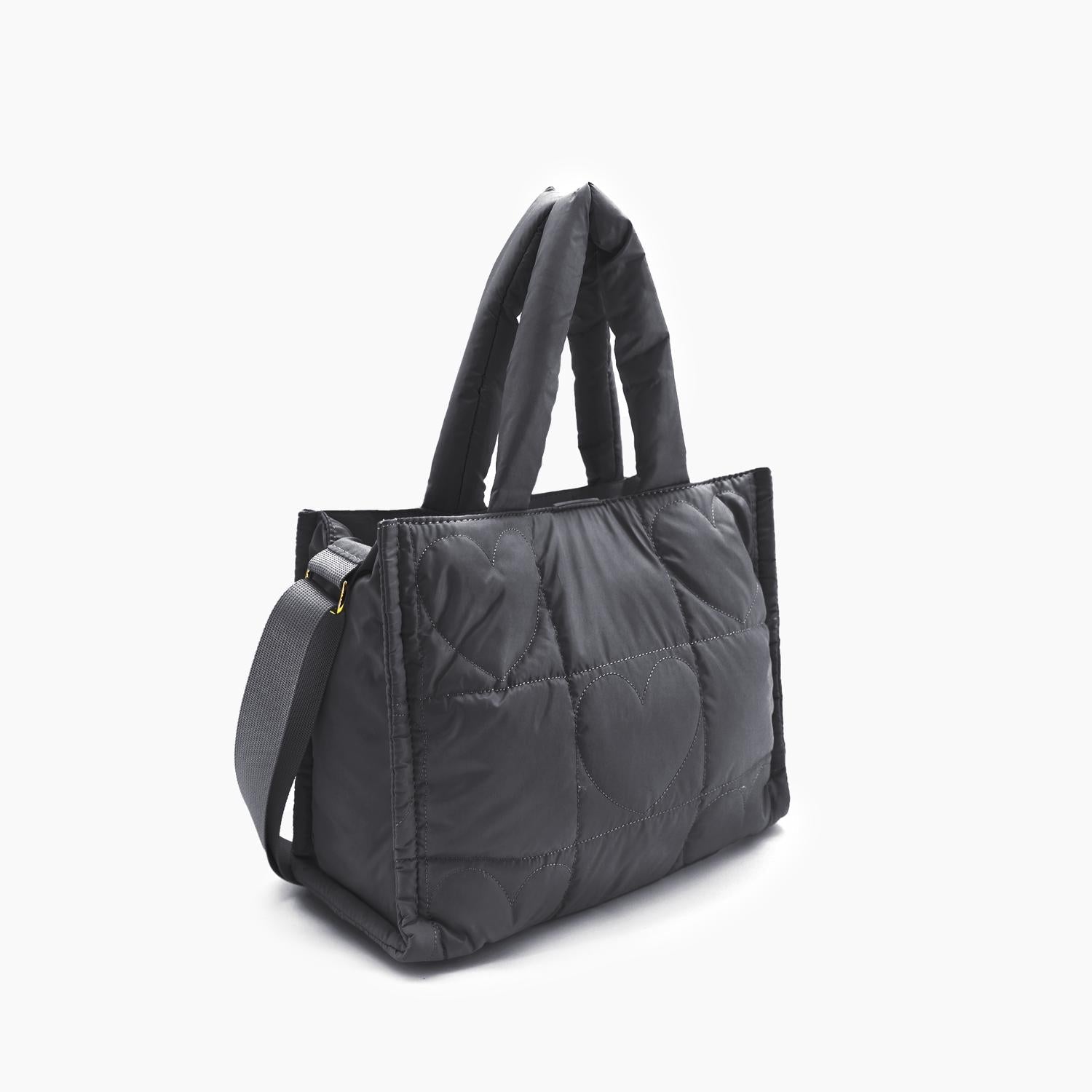 Descubra a Bolsa Tote Feminina Kiara Quilted Puffer com Estampa de Coração da Like Dreams, uma adição elegante e funcional à sua coleção. Confeccionada em nylon resistente, esta bolsa tote preta possui um compartimento principal de tamanho médio e um prático bolso interno com zíper, perfeito para seus itens essenciais do dia a dia. Com uma alça superior de 15 cm e uma alça transversal ajustável e removível de 60 cm, ela promete conforto o dia todo. O fecho é garantido por um botão magnético, e a bolsa mede 29 cm de largura, 24 cm de altura e 14 cm de profundidade. Peso: 425 g.